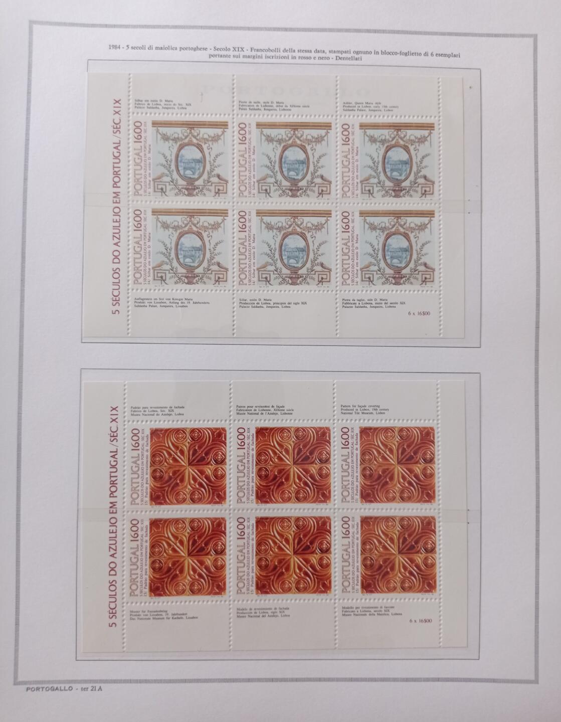 Maioliche portoghesi 14esima e 15esima serie (cat. n. 1618 e 1619) montati su Fogli Marini King usati
