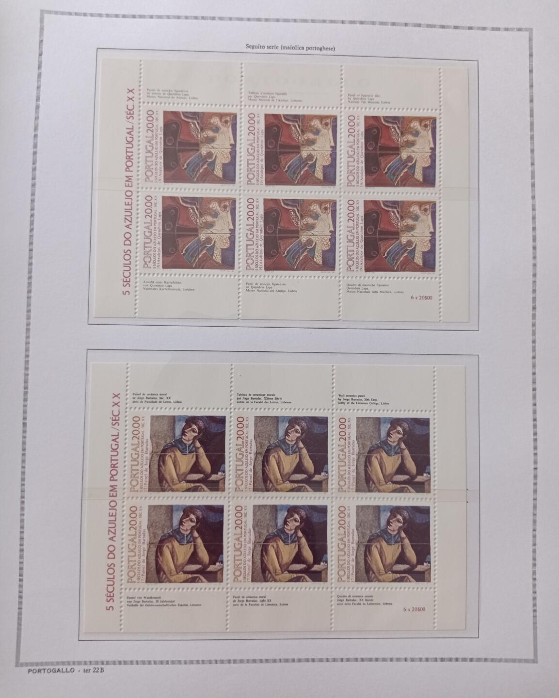 Minifogli Portogallo Anno 1985 Maioliche portoghesi 17esima e 19esima serie (cat. n. 1627 e 1643) montati su Fogli Marini King usati (i fogli sono in omaggio)