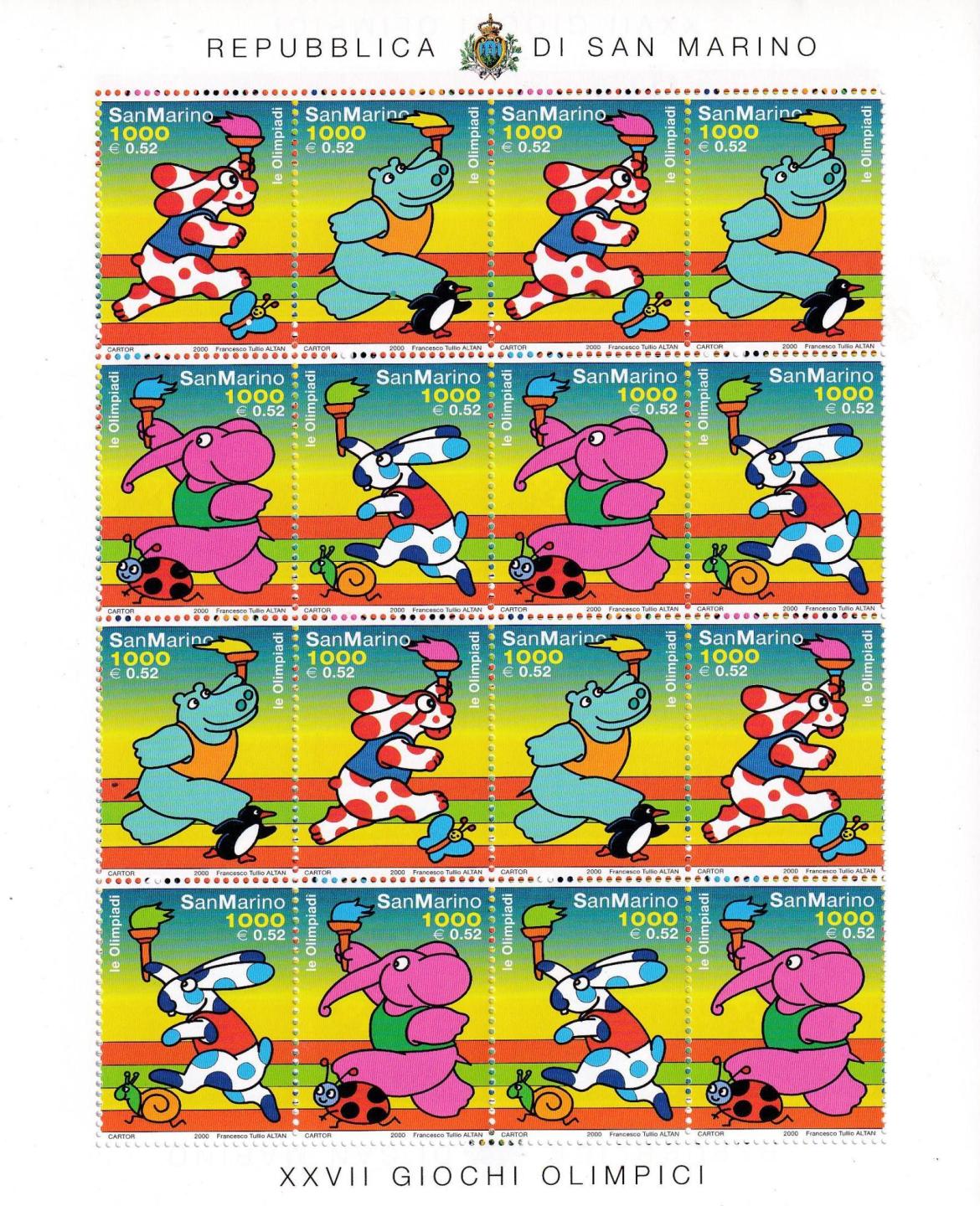 Olimpiadi 2000. Personaggi di fumetti di F. T. Altan con fiaccola olimpica