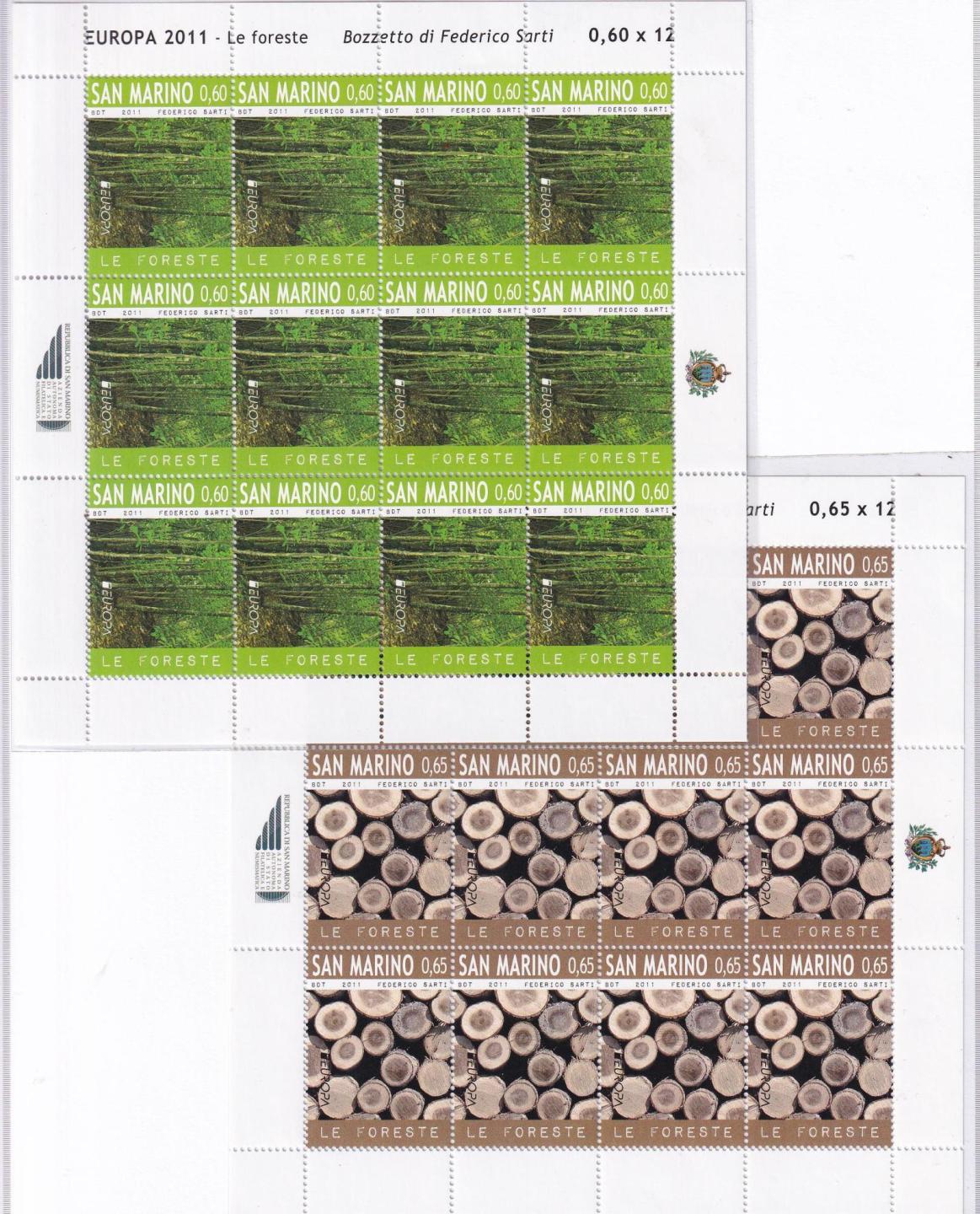 Minifogli San Marino Anno 2011 Europa. Le foreste. Foresta del Teso San Marcello Pistoiese (cat. n. 2315-2316)