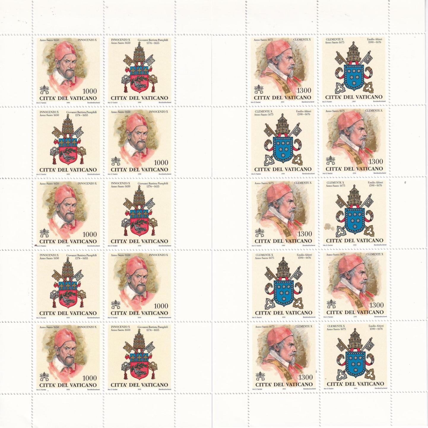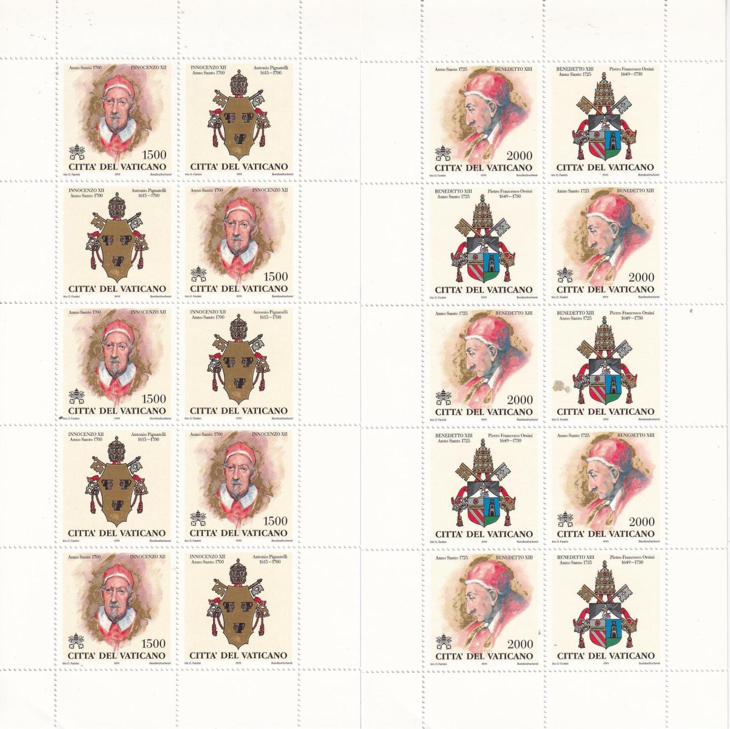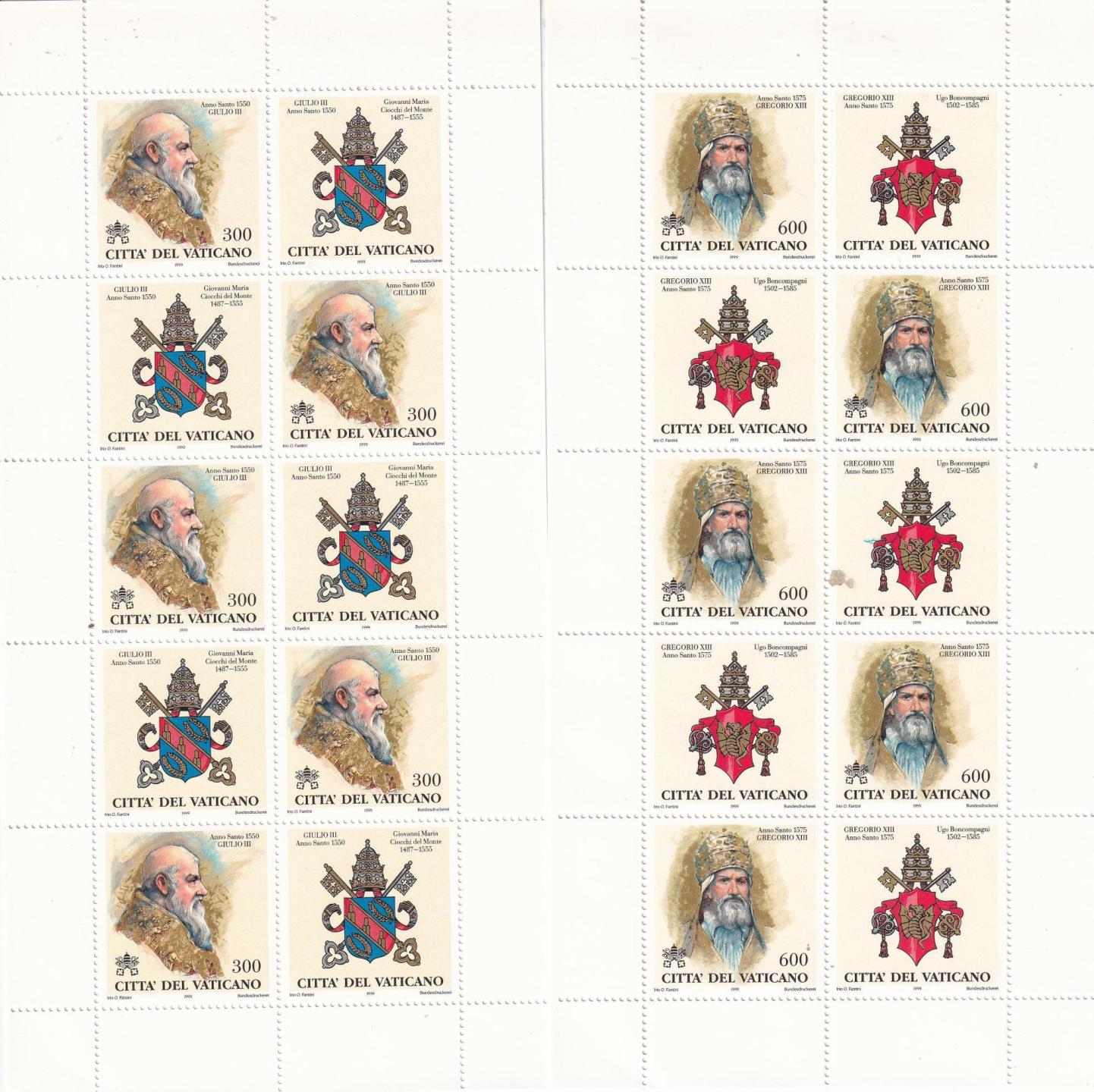 Minifogli Vaticano, Anno 1999, I Papi e gli Anni Santi (1300-2000) Seconda serie (MF n. 1145-1153)