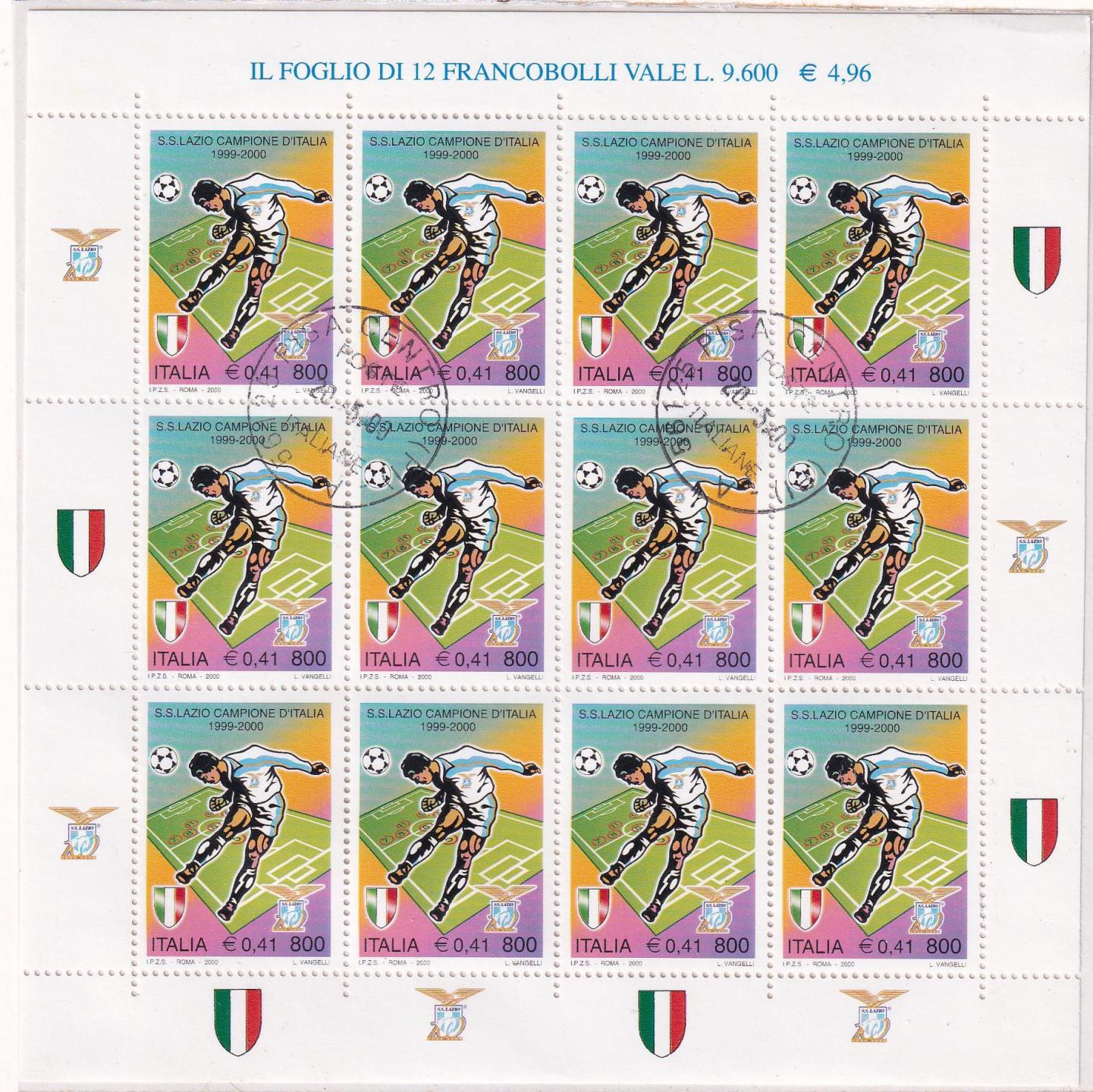 Minifoglio Italia Anno 2000 cat. n. 2518 S. S. Lazio Campione d’Italia con Annullo speciale