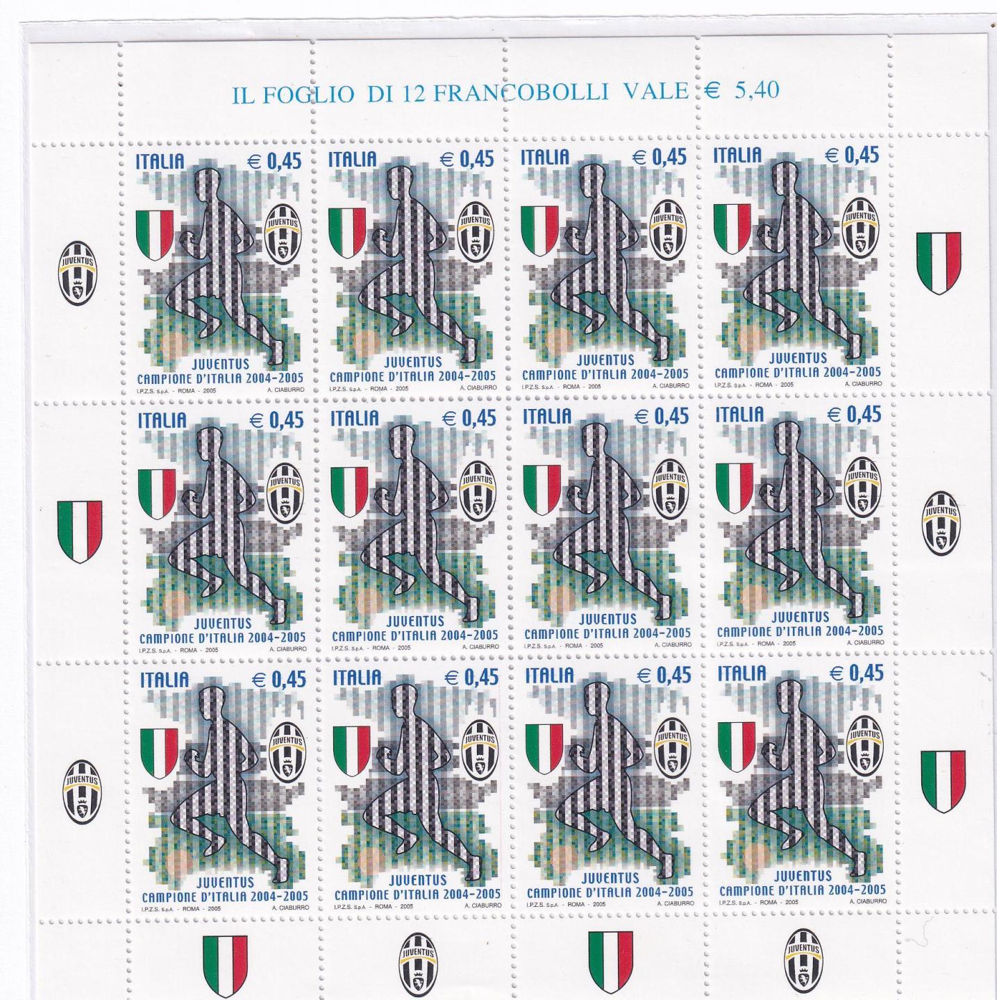 Minifoglio Italia Anno 2005 cat. n. 2872 Juventus Campione d’Italia