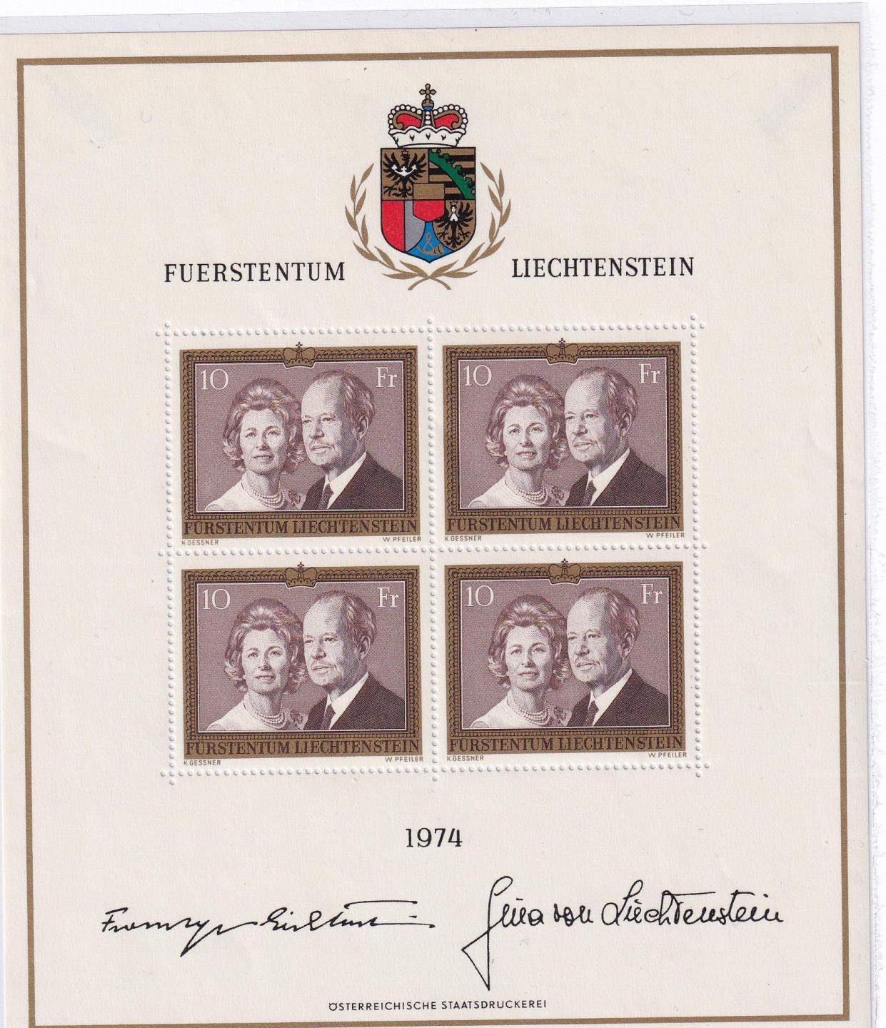 Minifoglio Liechtenstein, Anno 1974, Serie ordinaria. Effigi dei principi regnanti (cat. n. 557)