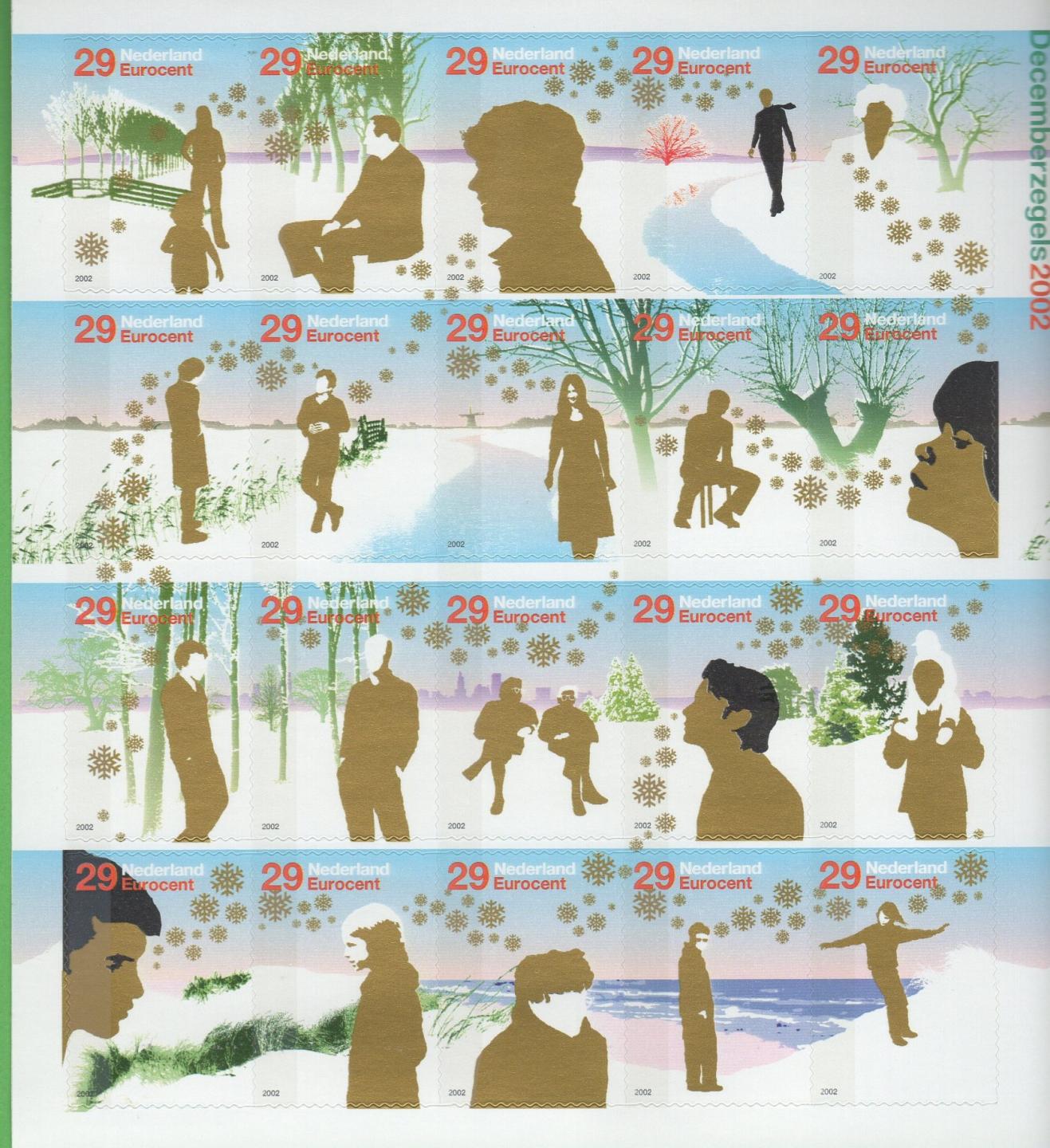 Minifoglio Olanda Anno 2002 Francobolli per le feste di fine anno Autoadesivi (MF 2021-2040)