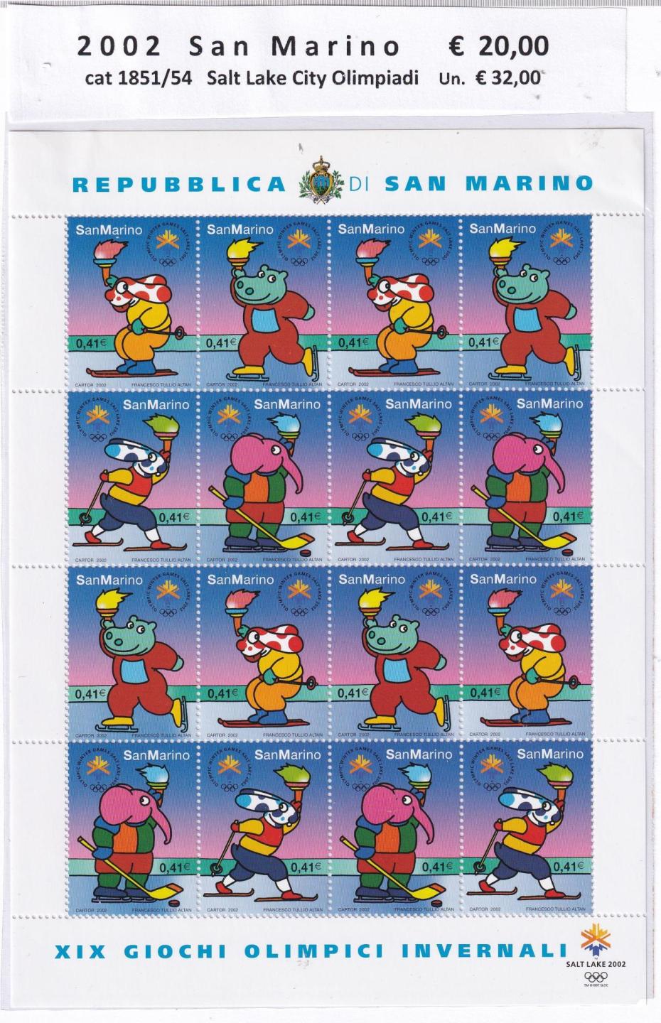 Minifoglio San Marino Anno 2002 cat. n. 1851-1854 Giochi Olimpici Invernali Salt Lake City