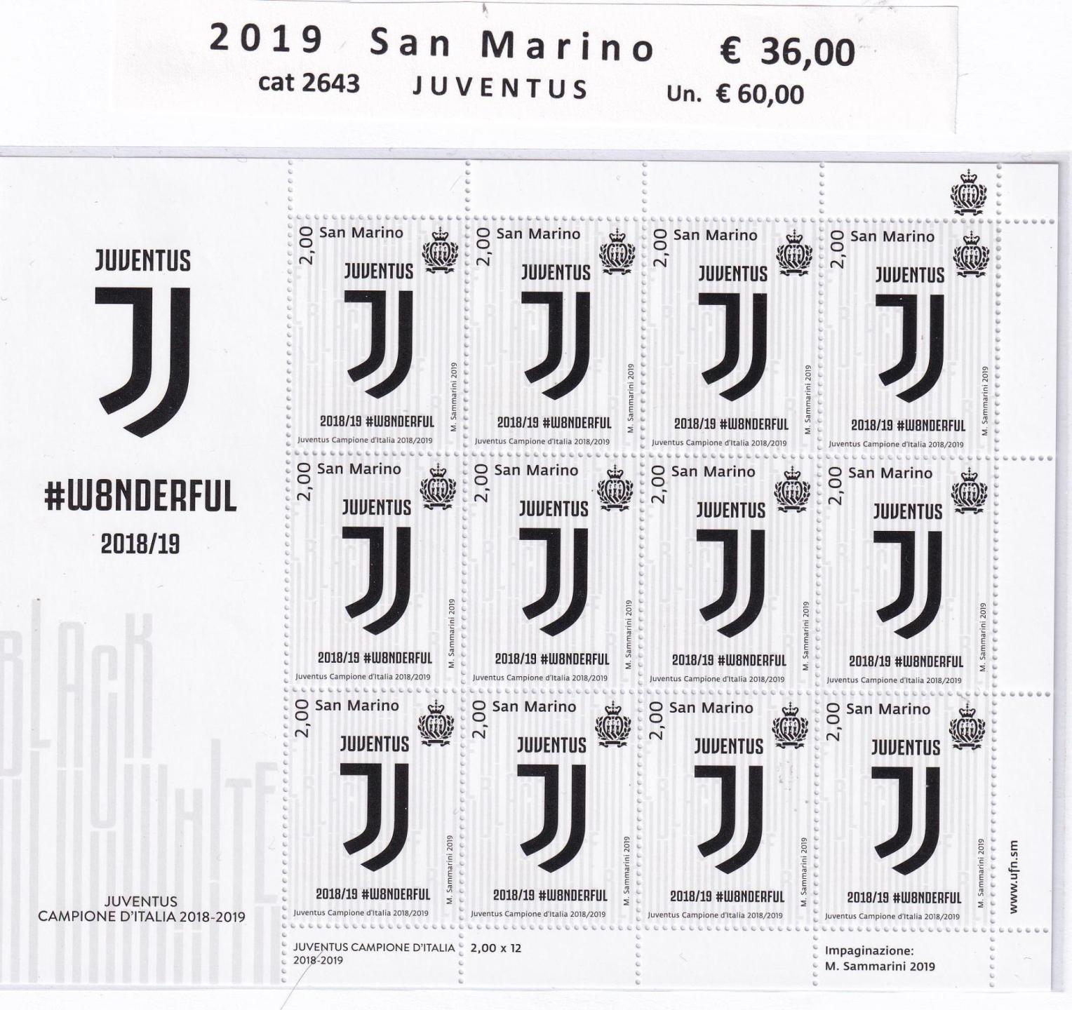 Minifoglio San Marino Anno 2019 cat. n. 2643 Juventus Campione d’Italia
