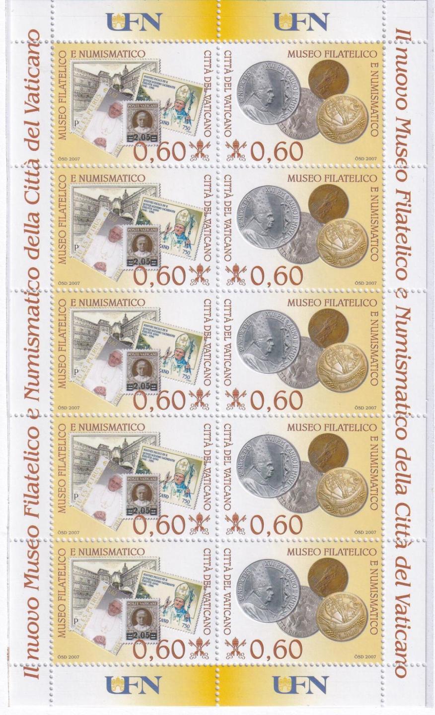Minifoglio Vaticano Anno 2007 cat. n. 1448-1449 Museo Filatelico e Numismatico