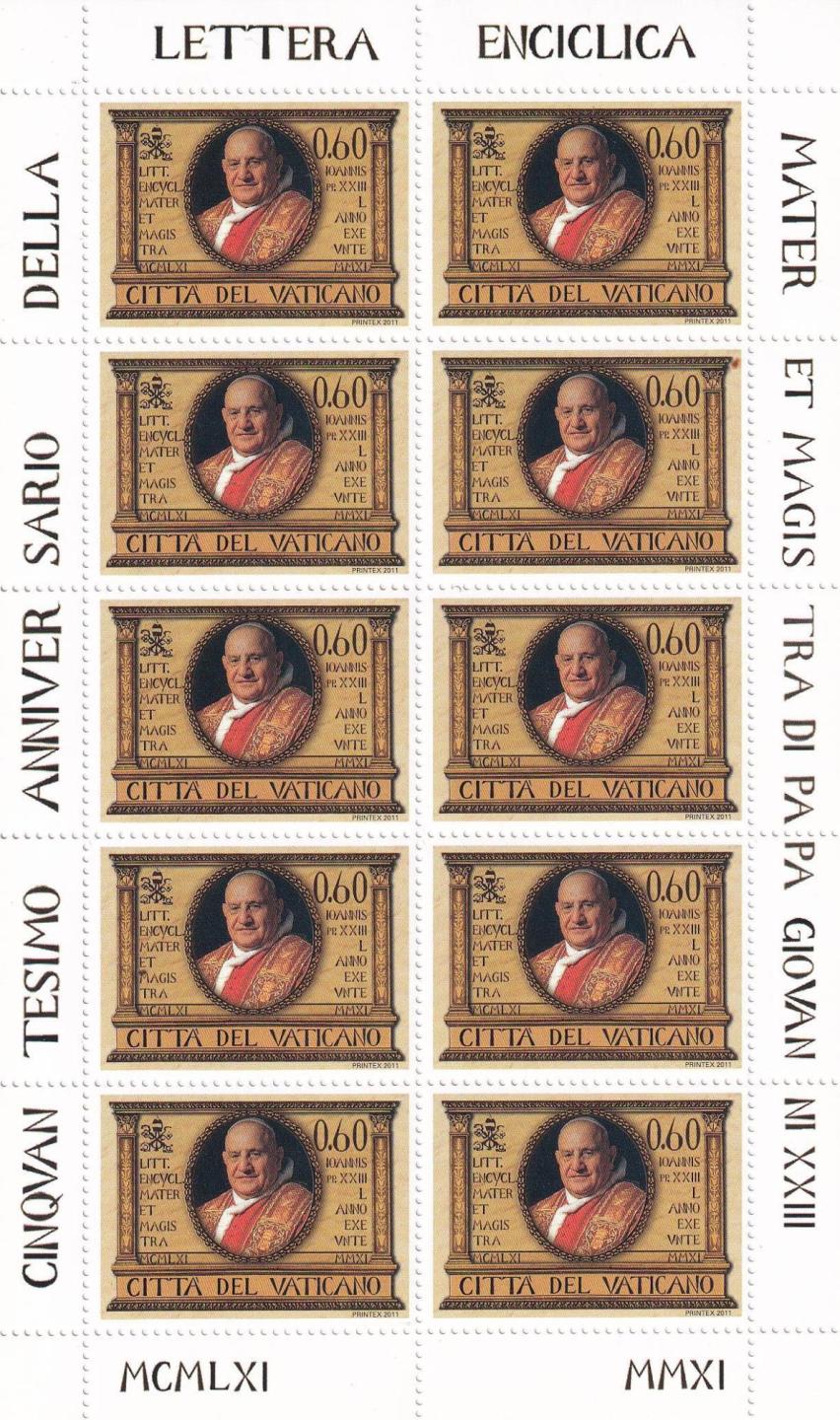 Minifoglio Vaticano, Anno 2011, Cinquantenario dell’enciclica ‘Mater et Magistra’ (MF n. 1583)