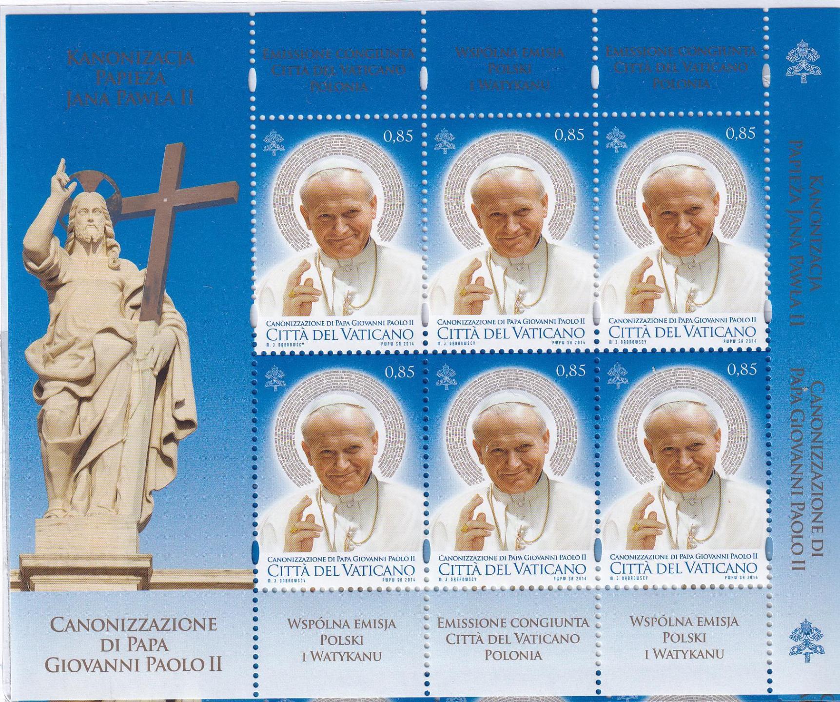 Minifoglio Vaticano, Anno 2014, Canonizzazione di Papa Giovanni Paolo II (MF n. 1661) Emissione congiunta con la Polonia