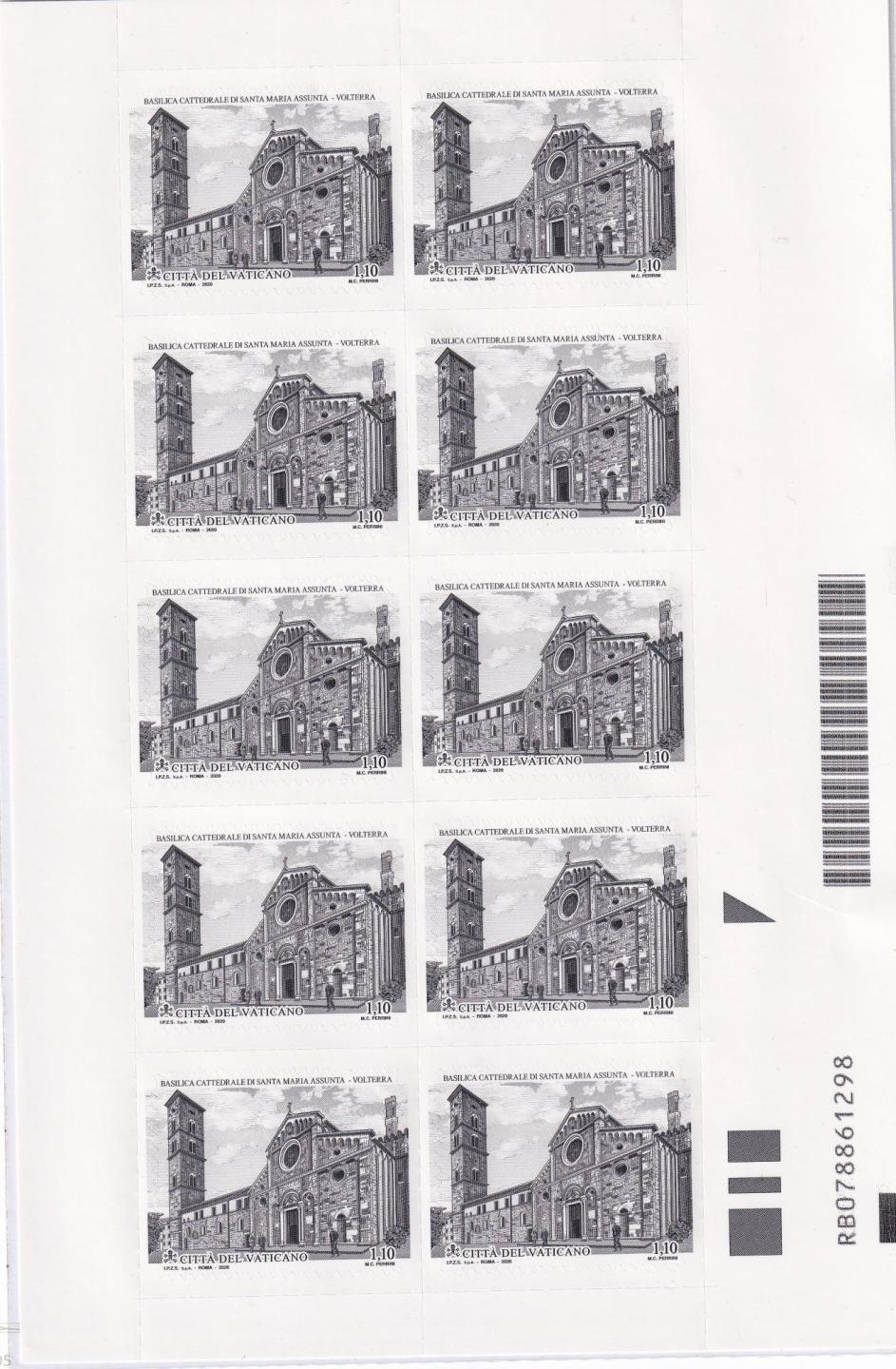 Minifoglio Vaticano, Anno 2020, Nono centenario della dedicazione a Santa Maria Assunta della Basilica Cattedrale di Volterra (MF n. 1873) Emissione congiunta con l’Italia