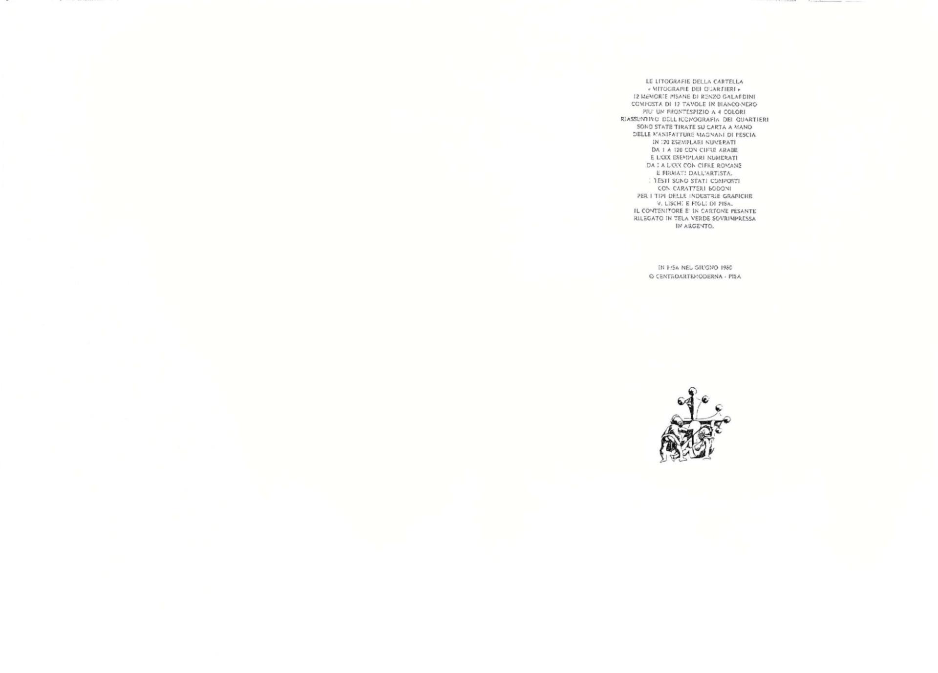 Mitografie dei Quartieri. 12 memorie pisane di Renzo Galardini. 12 litografie mis. 35 x 50 cm.