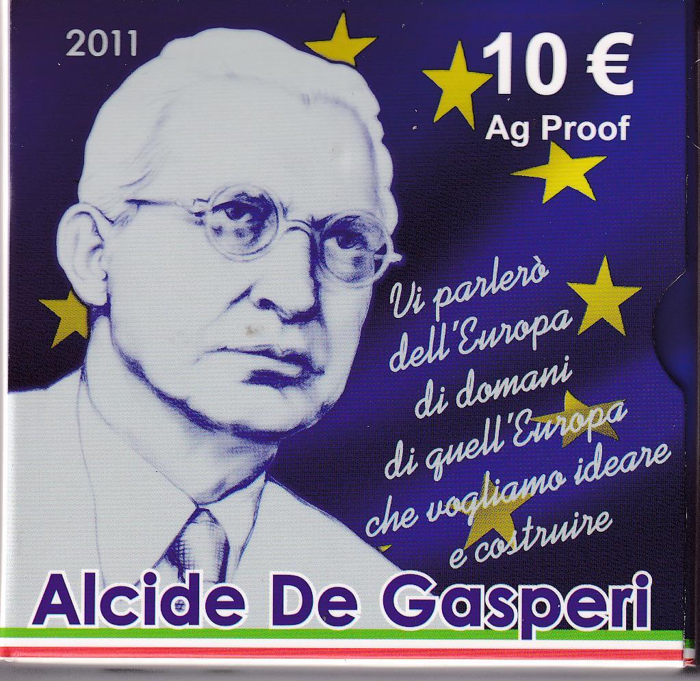 Moneta commemorativa Italia Repubblica Euro 10,00 Centotrentesimo Anniversario nascita Alcide De Gasperi Anno 2011 Proof