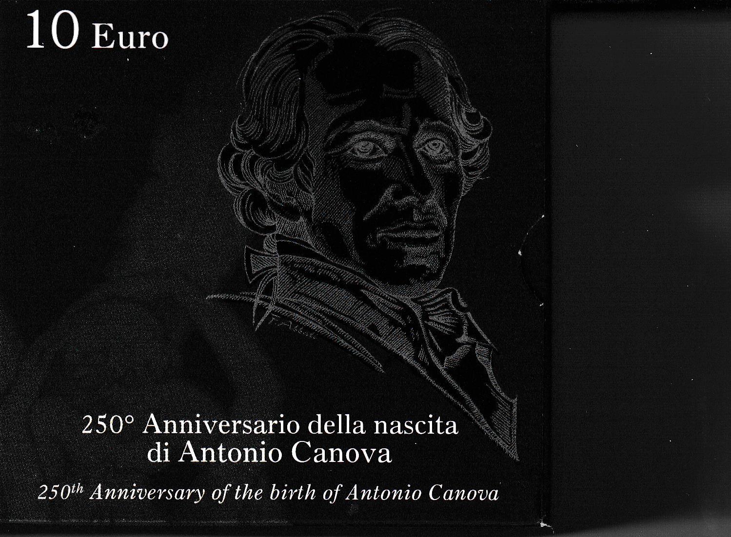 Moneta commemorativa Italia Repubblica Euro 10,00 Duecentocinquantesimo anniversario nascita Antonio Canova Anno 2007 Proof