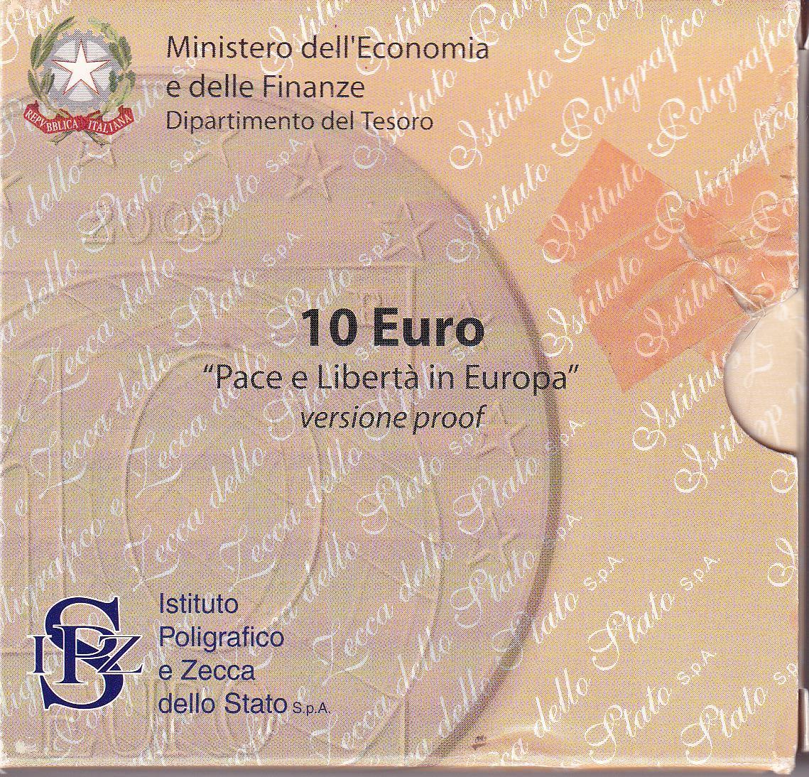 Moneta commemorativa Italia Repubblica Euro 10,00 Pace e libertà in Europa Anno 2005 Proof