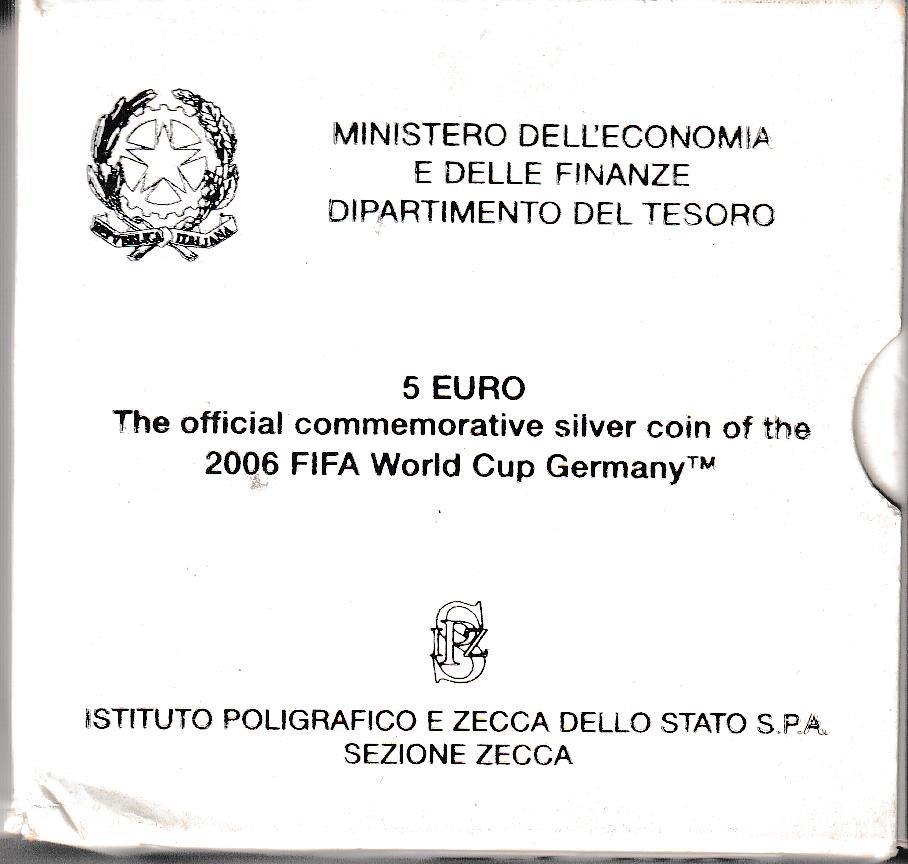Moneta commemorativa Italia Repubblica Euro 5,00 2006 FIFA World Cup Germany Anno 2005