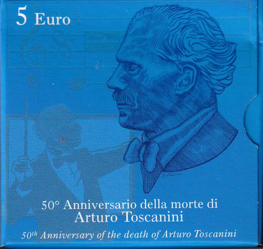 Moneta commemorativa Italia Repubblica Euro 5,00 Cinquantesimo anniversario morte Arturo Toscanini – Anno 2007