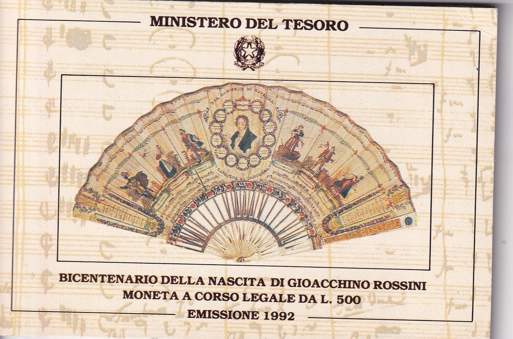 Moneta da Lire 500 in argento commemorativa del Bicentenario della nascita di Gioacchino Rossini