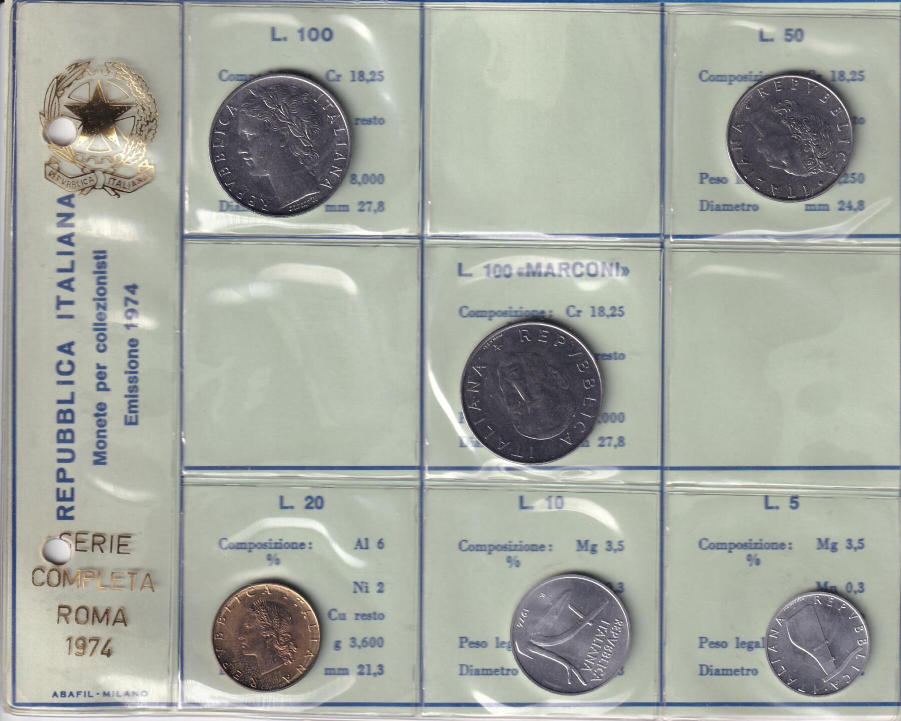 Serie non ufficiale di monete a corso legale 1974
