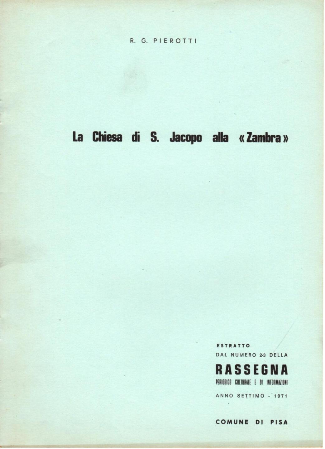 Pierotti R. G., La Chiesa di S. Jacopo alla ‘Zambra’, Estratto Rassegna. Periodico Culturale e di Informazioni. Anno settimo – 1971, Comune di Pisa
