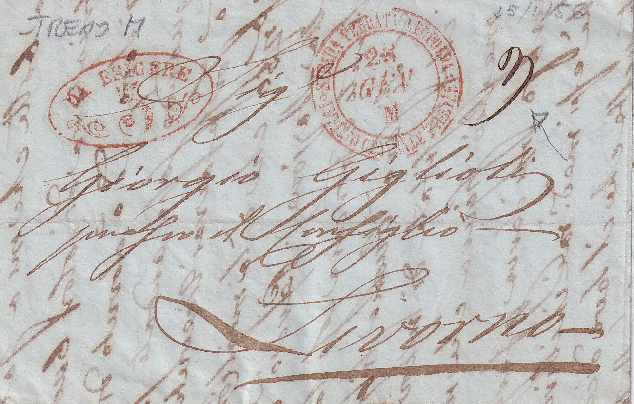 Strada Ferrata Leopolda da Firenze 25 GEN M (1856) a Livorno 3574