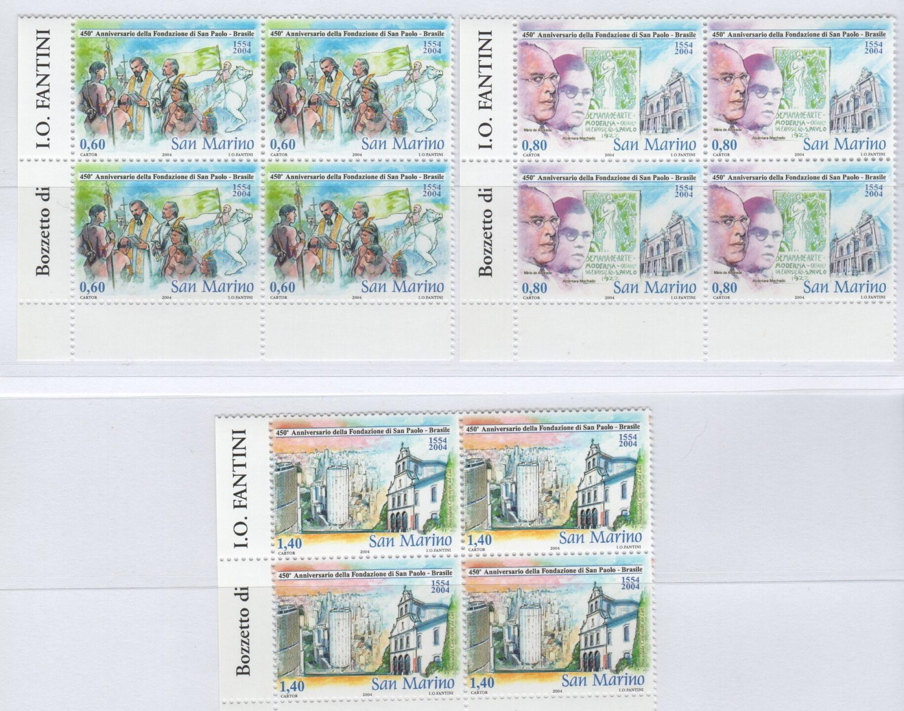 Quartine d’angolo inferiore sinistro della serie di 3 Francobolli San Marino