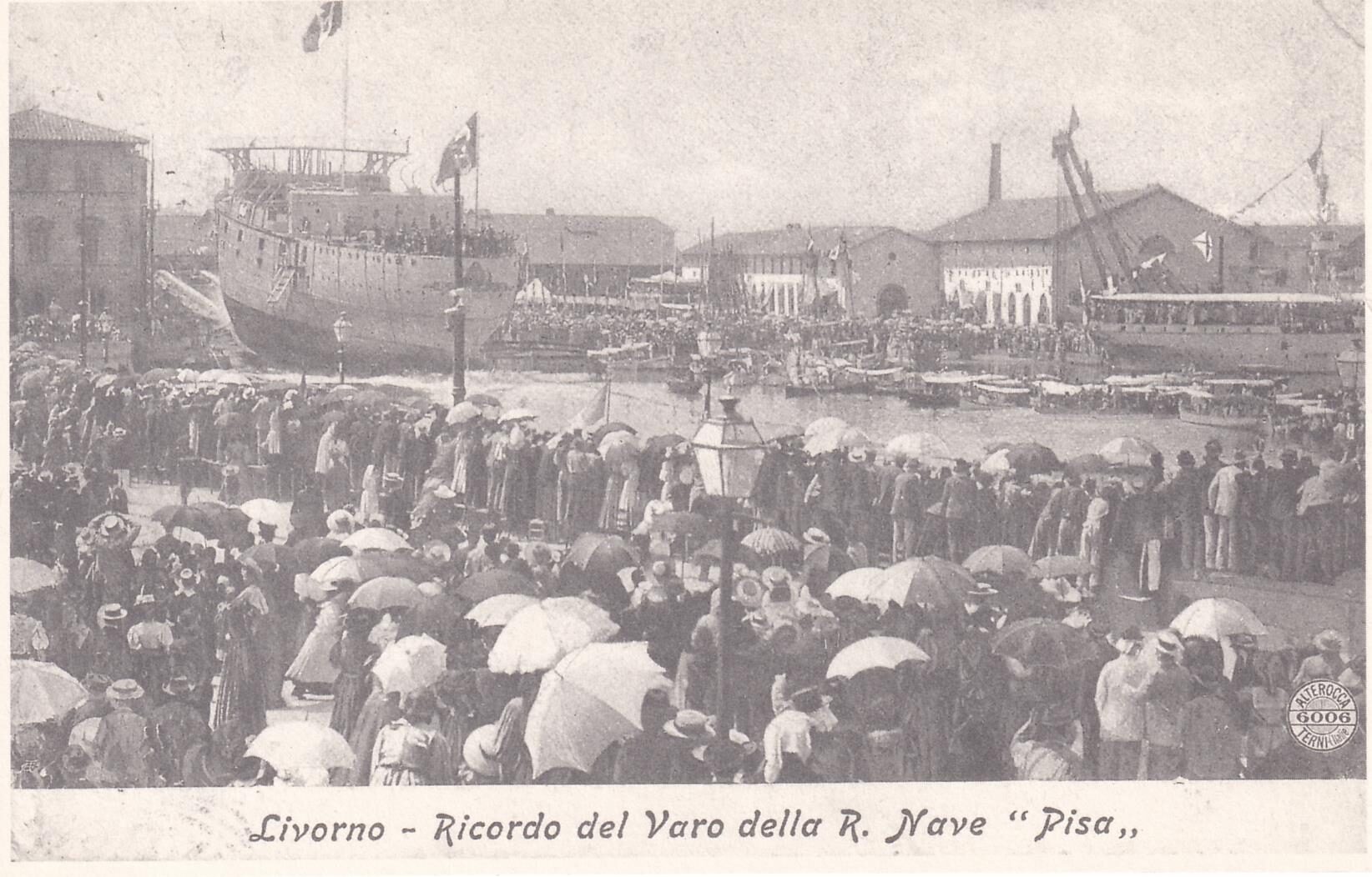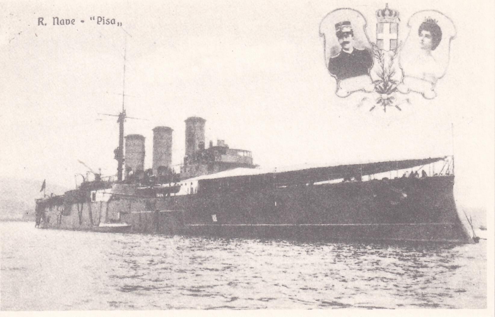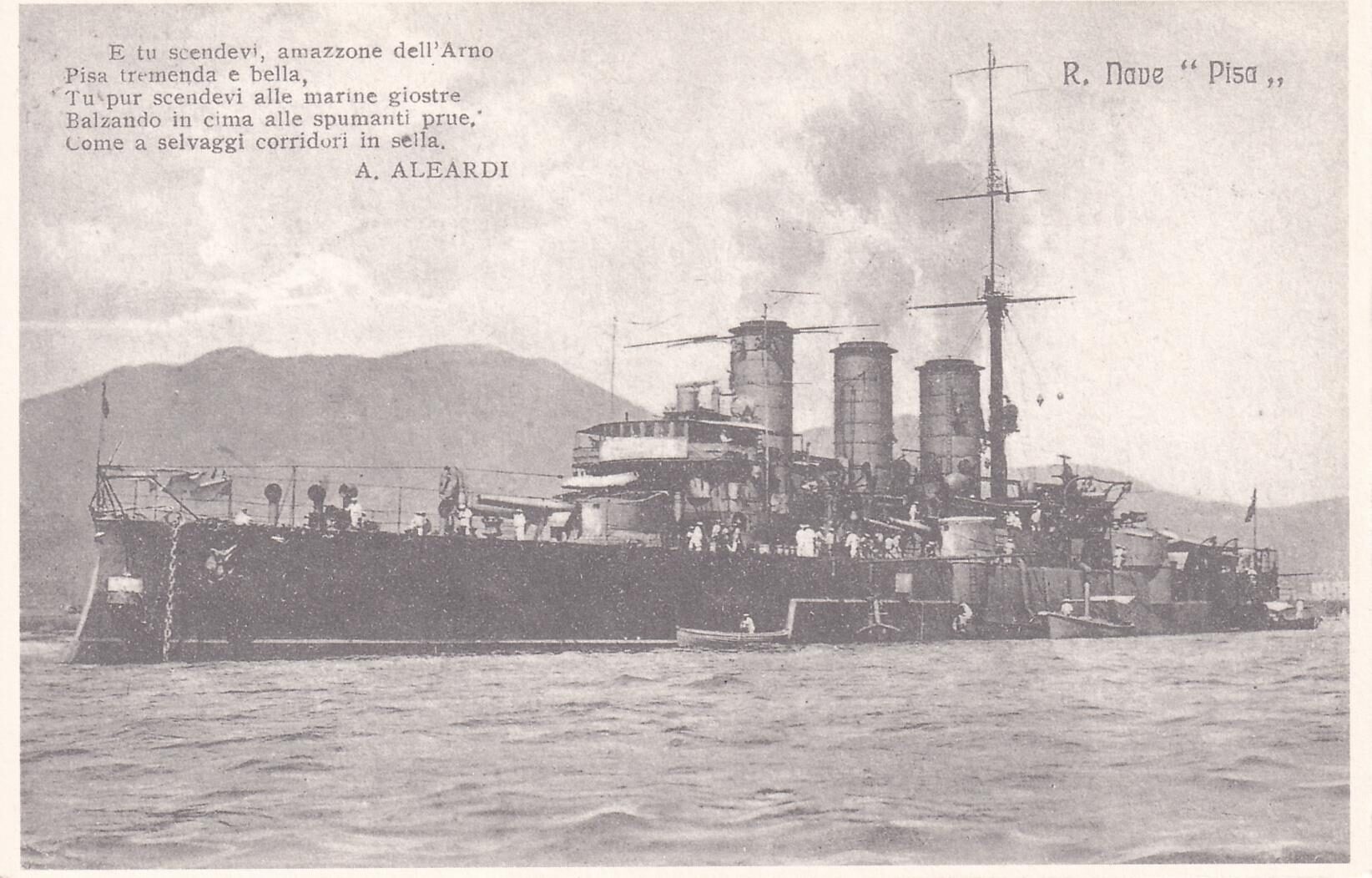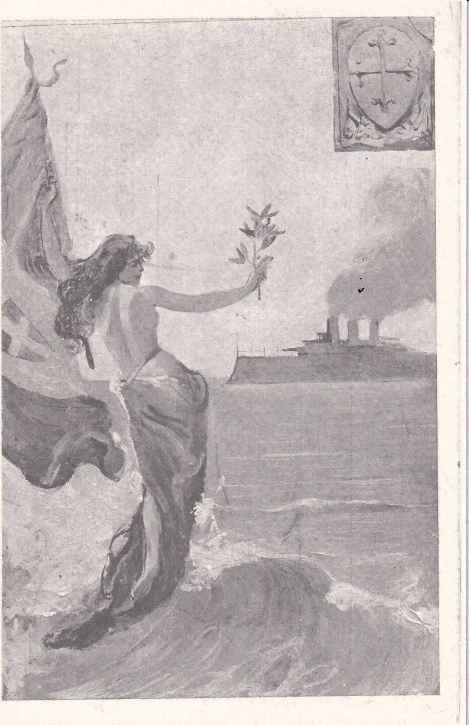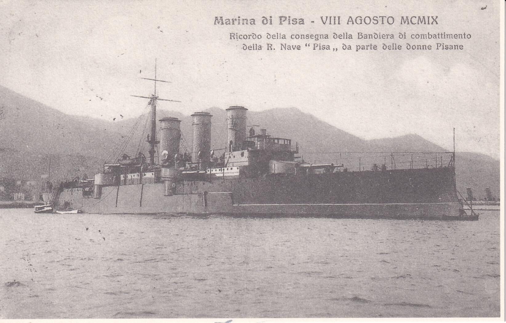 Serie di 6 Cartoline riproduzioni del Folder Regia Nave Pisa edita nel 1906 per il varo e la consegna della bandiera delle Signore Pisane alla regia Nave Pisa