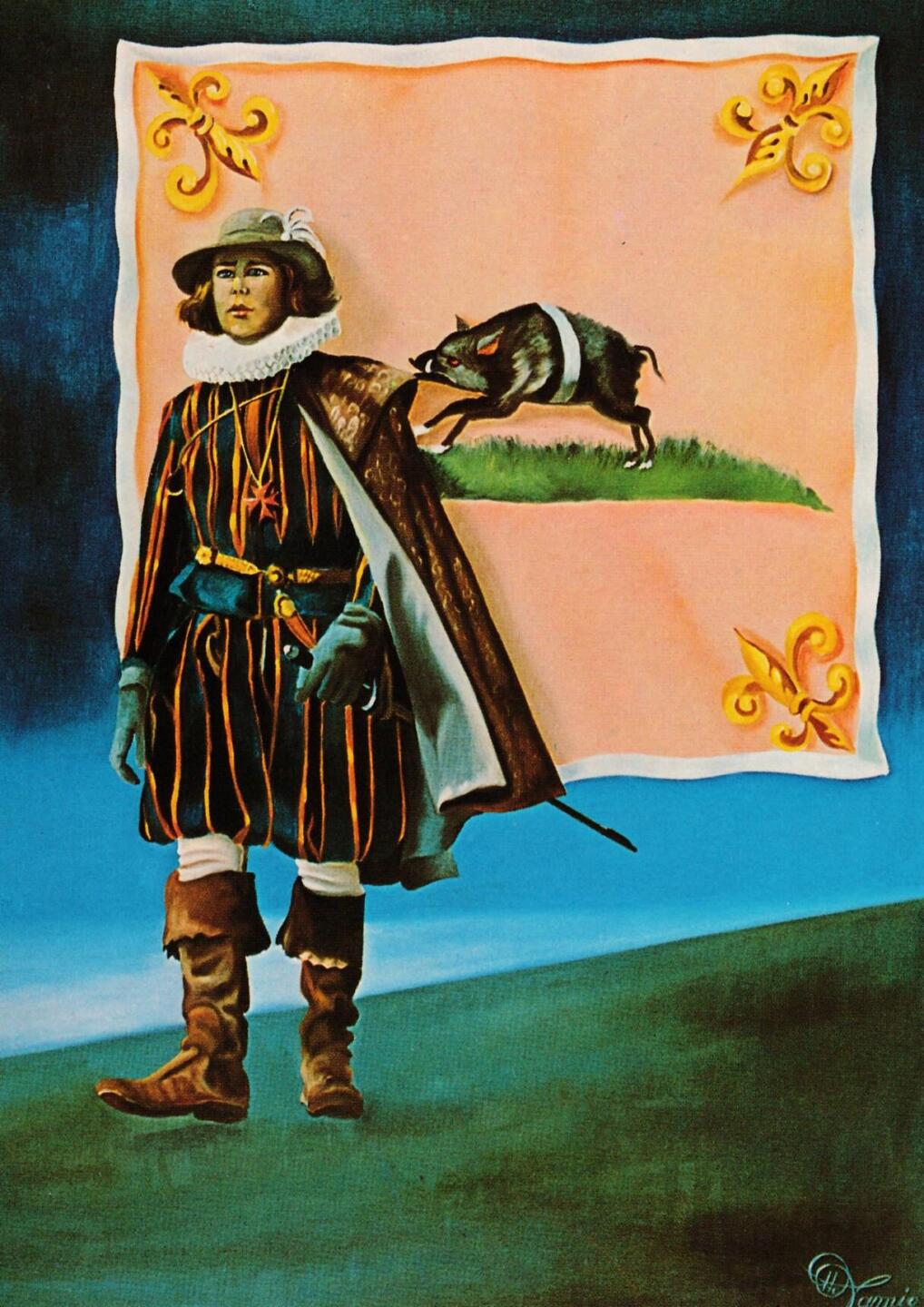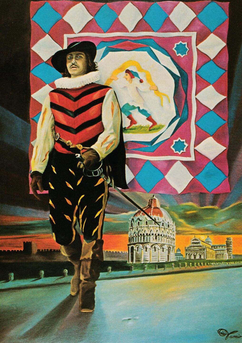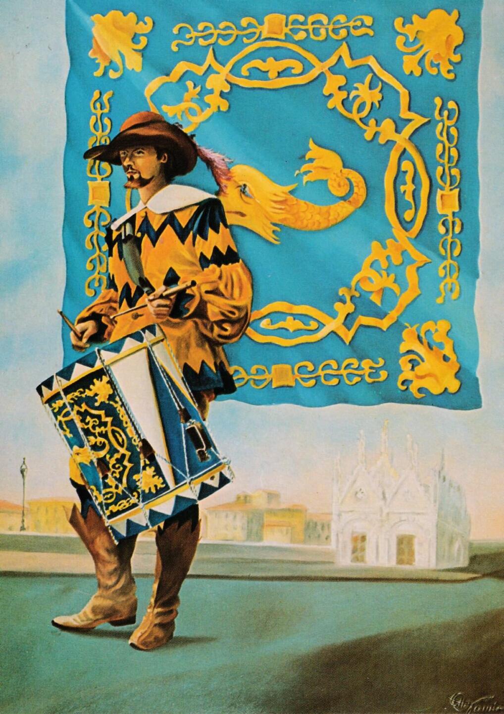 Serie di n. 12 Cartoline da quadri del pittore Otto Pamio raffiguranti i Capitani dei 12 quartieri del Gioco del Ponte