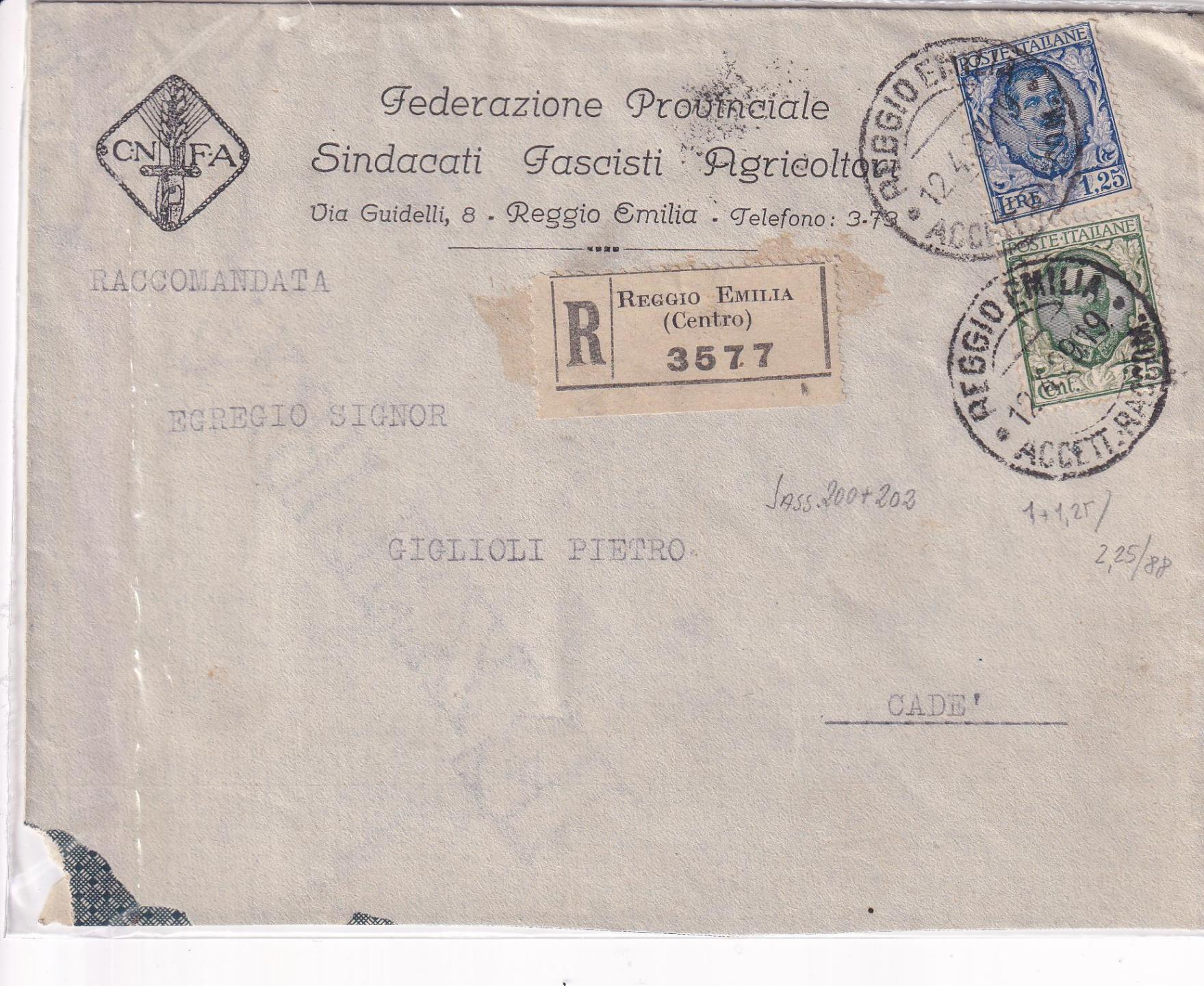 Raccomandata da Reggio Emilia R 3577 del 12/04/1929 a Cadè 13/04/1929