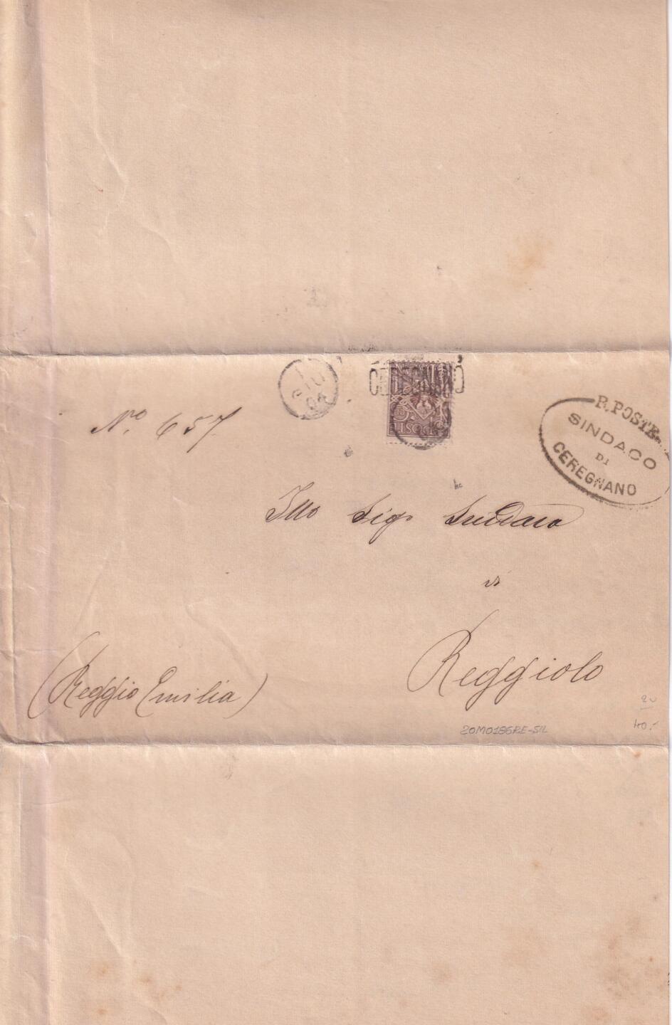 Circolare dal Sindaco di Ceregnano 01/06/1904 (1 GIU 04) a Reggiolo (Regio Emilia)