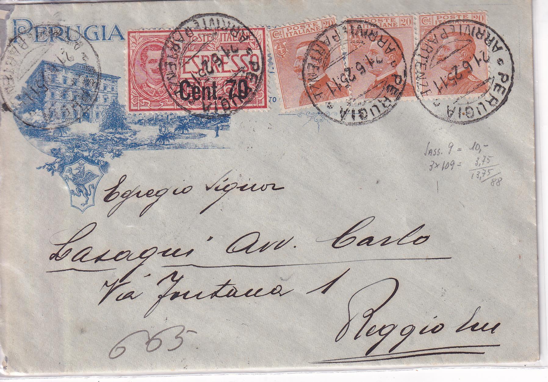 Storia postale. Espresso da Ancona 15/10/1920 a Ancona 21/06/1925