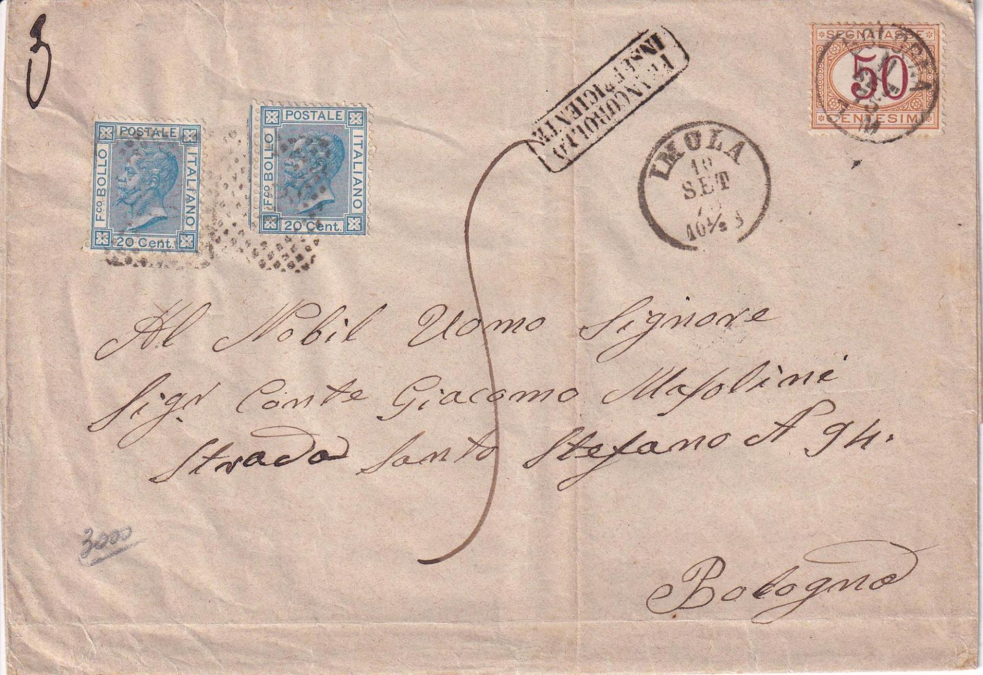 Lettera da Imola 10/09/1875 a Bologna 11/09/1875