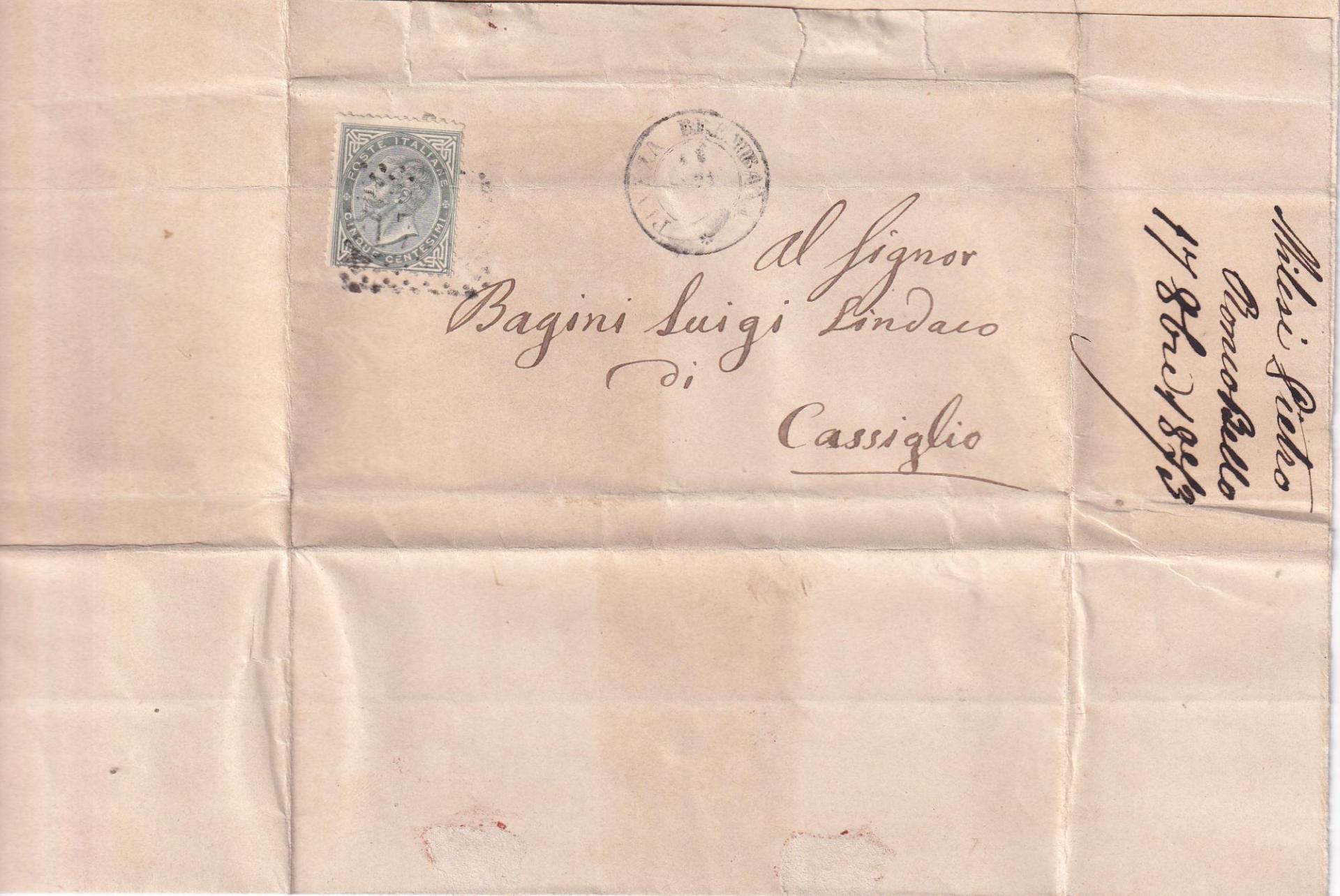 Lettera da Piazza Brembana 17/10/1873 a Cassiglio