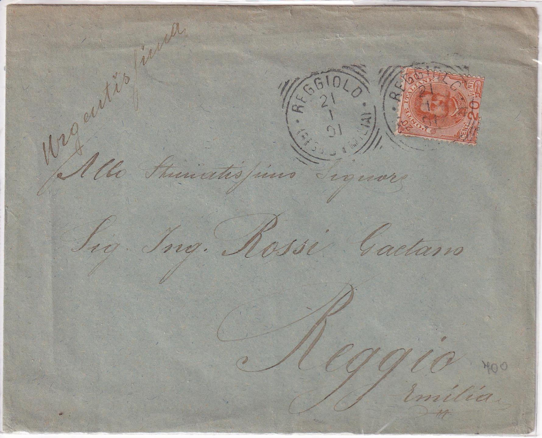 Lettera da Reggiolo 21/01/1901 a Reggio Emilia 22/01/1901