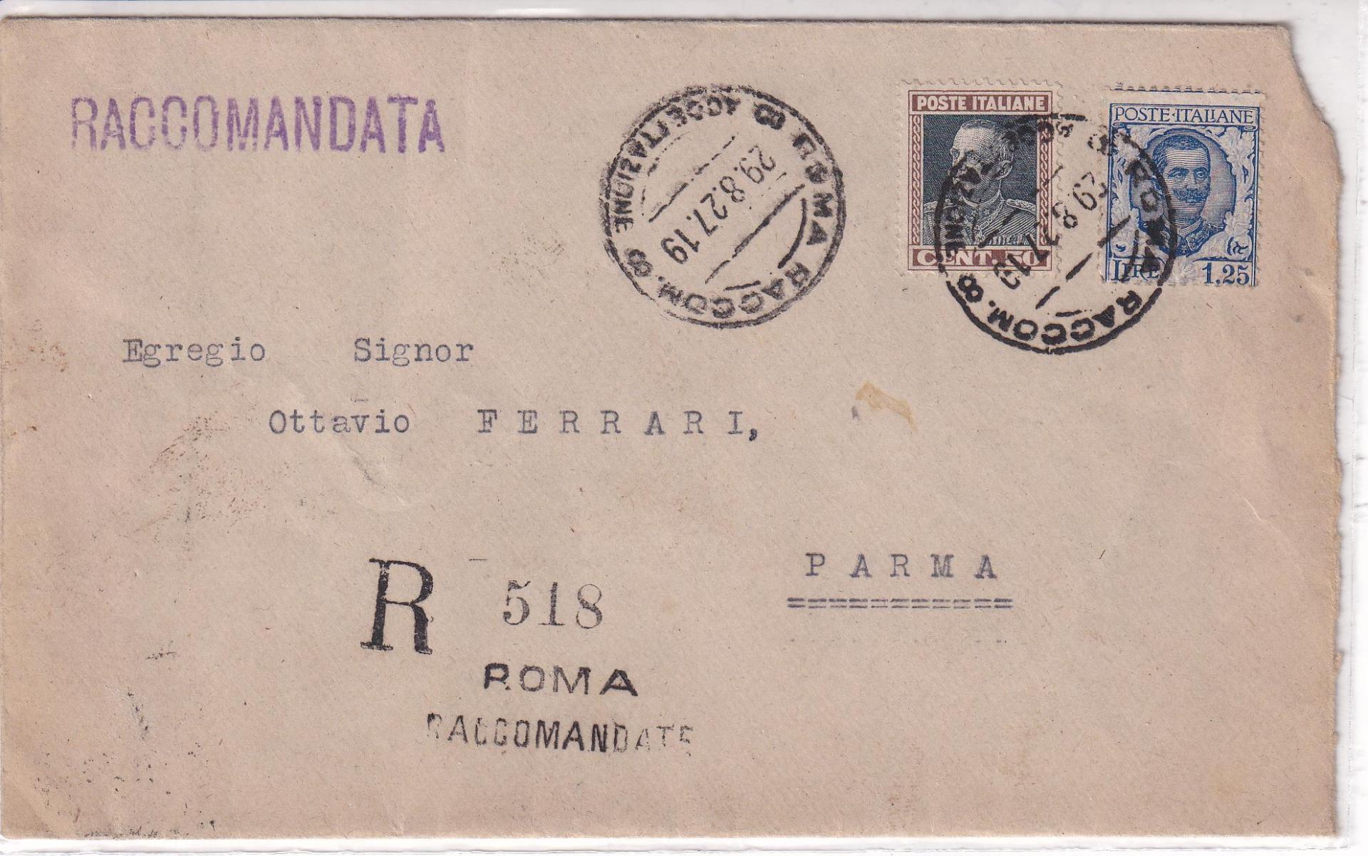Raccomandata da Roma 518 del 29/08/1927 a Parma 30/08/1927