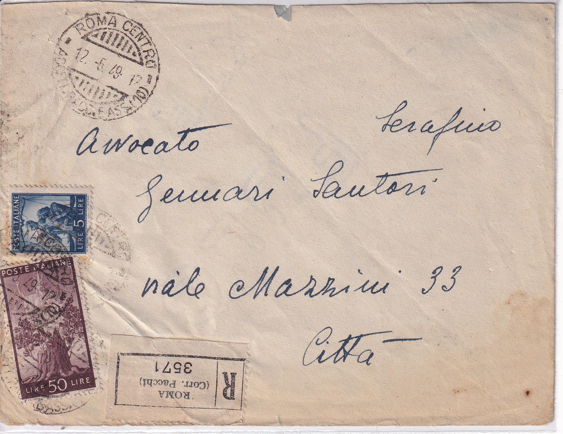 Raccomandata da Roma R 3571 12/05/1949 a Città 13/05/1949