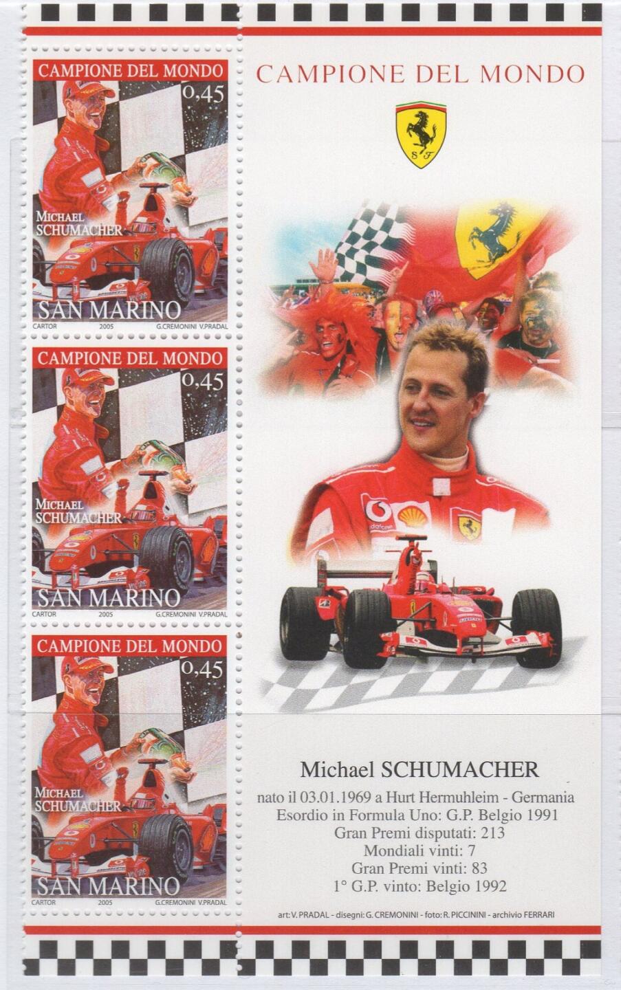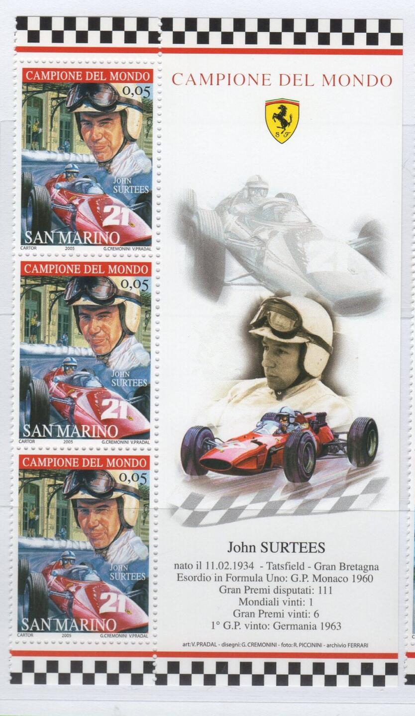 Strisce di 3 valori con relazione illustrata della serie di 6 Francobolli San Marino
