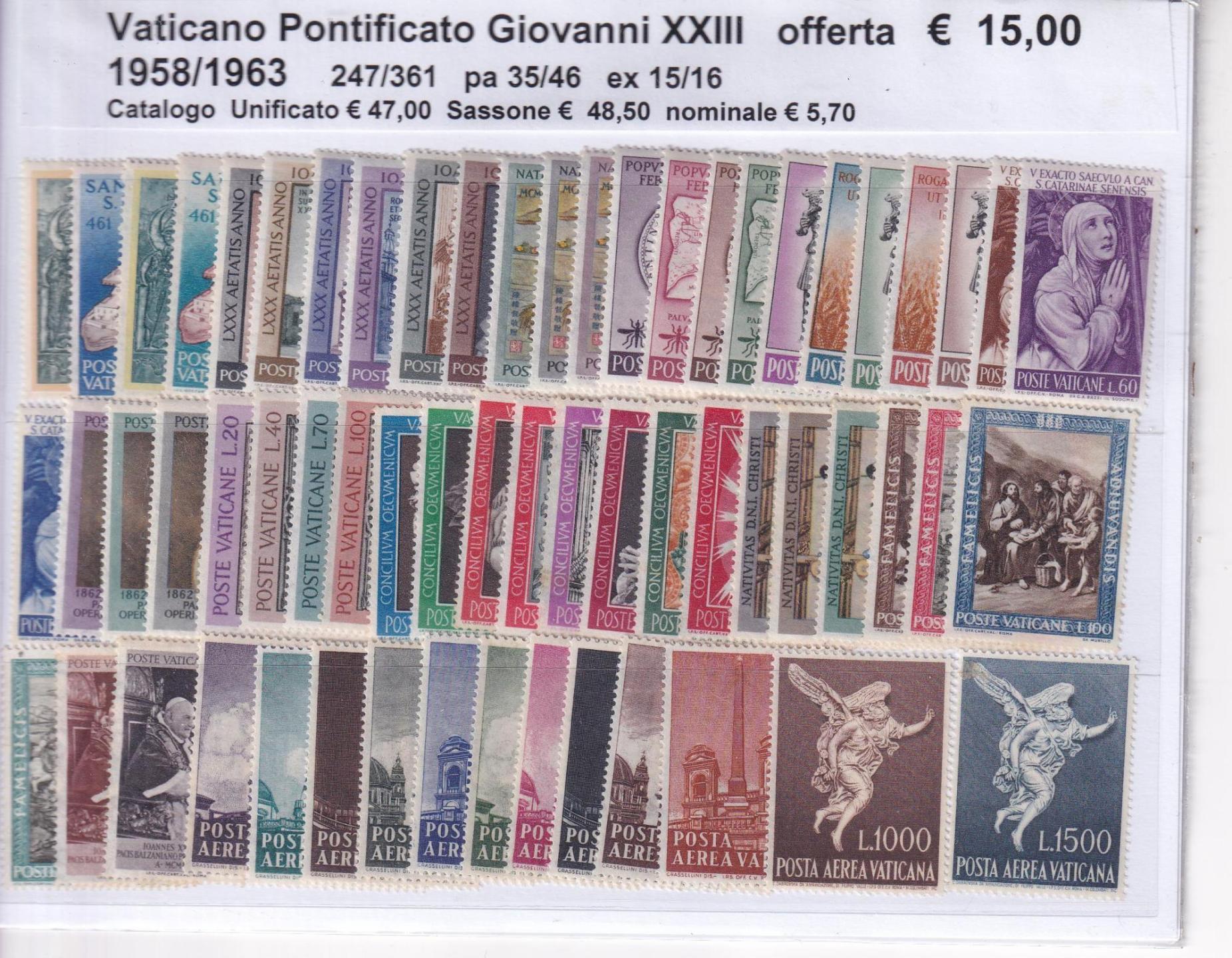 Francobolli Vaticano Anni 1958-1963 Giovanni XXIII Annate complete