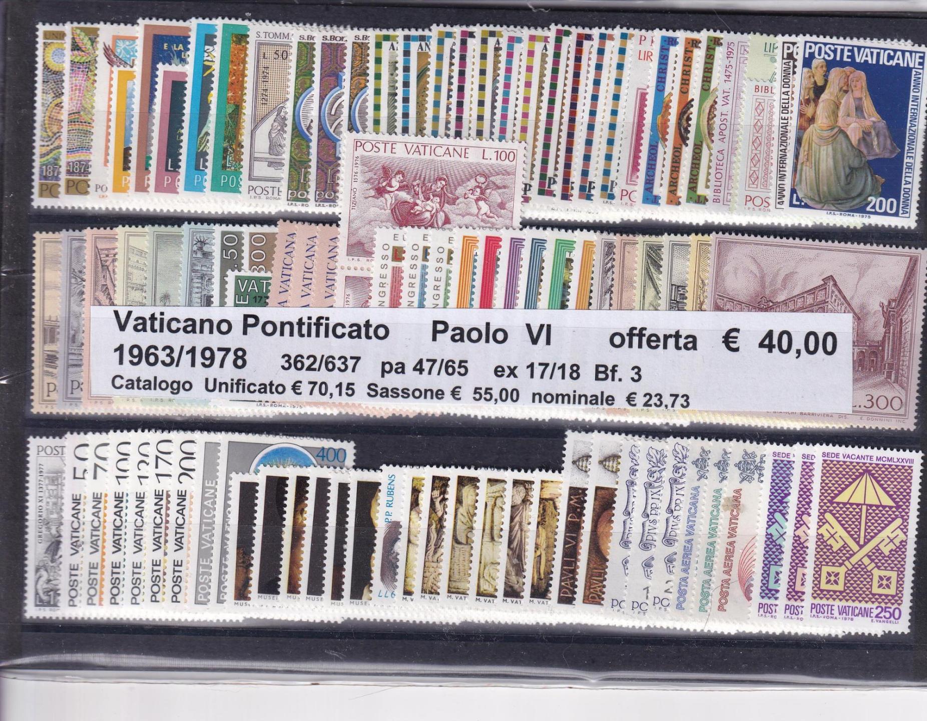 Francobolli Vaticano Anni 1963-1978 Paolo VI Annate complete