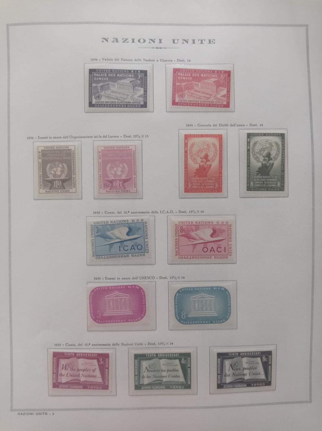 Francobolli Nazioni Unite – Ufficio di New York Anni 1951-1958 Montati su fogli Marini King usati (i fogli King sono in omaggio)