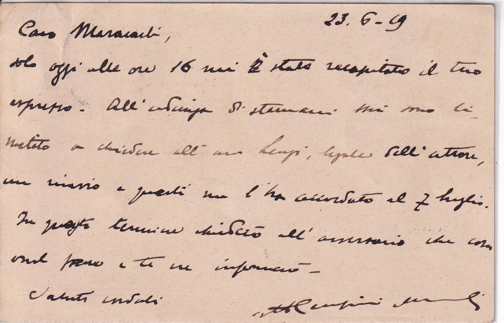 Storia postale. Cartolina da Parma 08/06/1924 a città