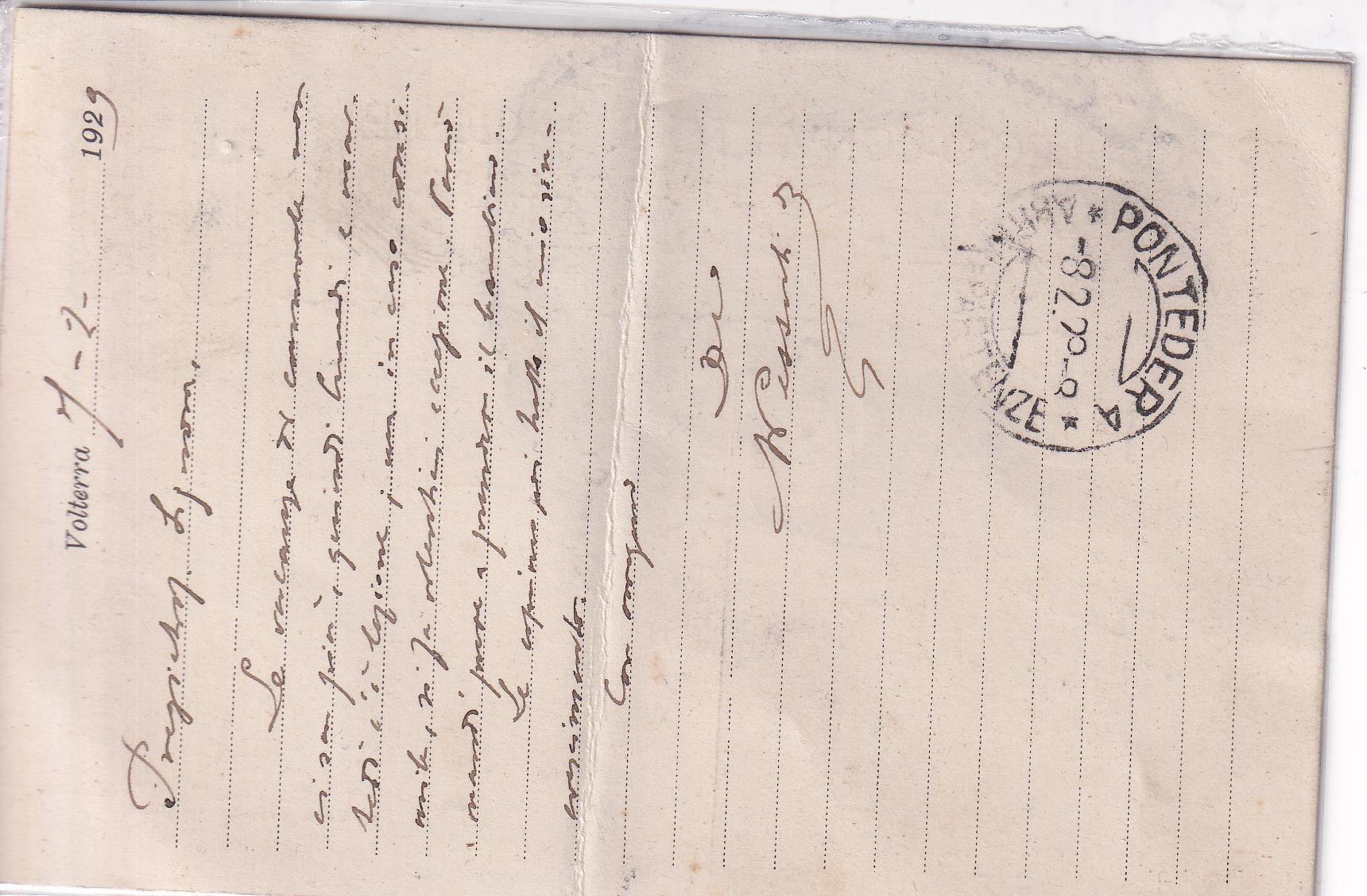 Storia postale. Cartolina postale Espresso da Volterra 07/02/1929 a Bagni di Casciana Pisa 8/02/1929