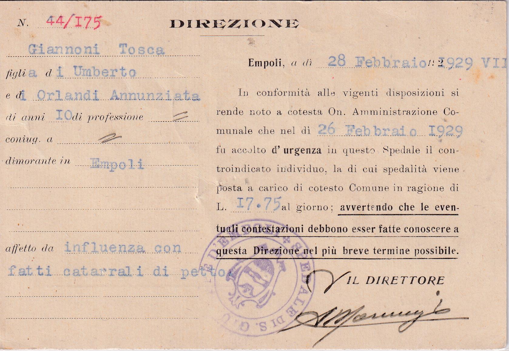 Storia postale. Cartolina Raccomandata da Empoli 3579 del 28/02/1929 a Santa Croce sull’Arno 28/02/1929
