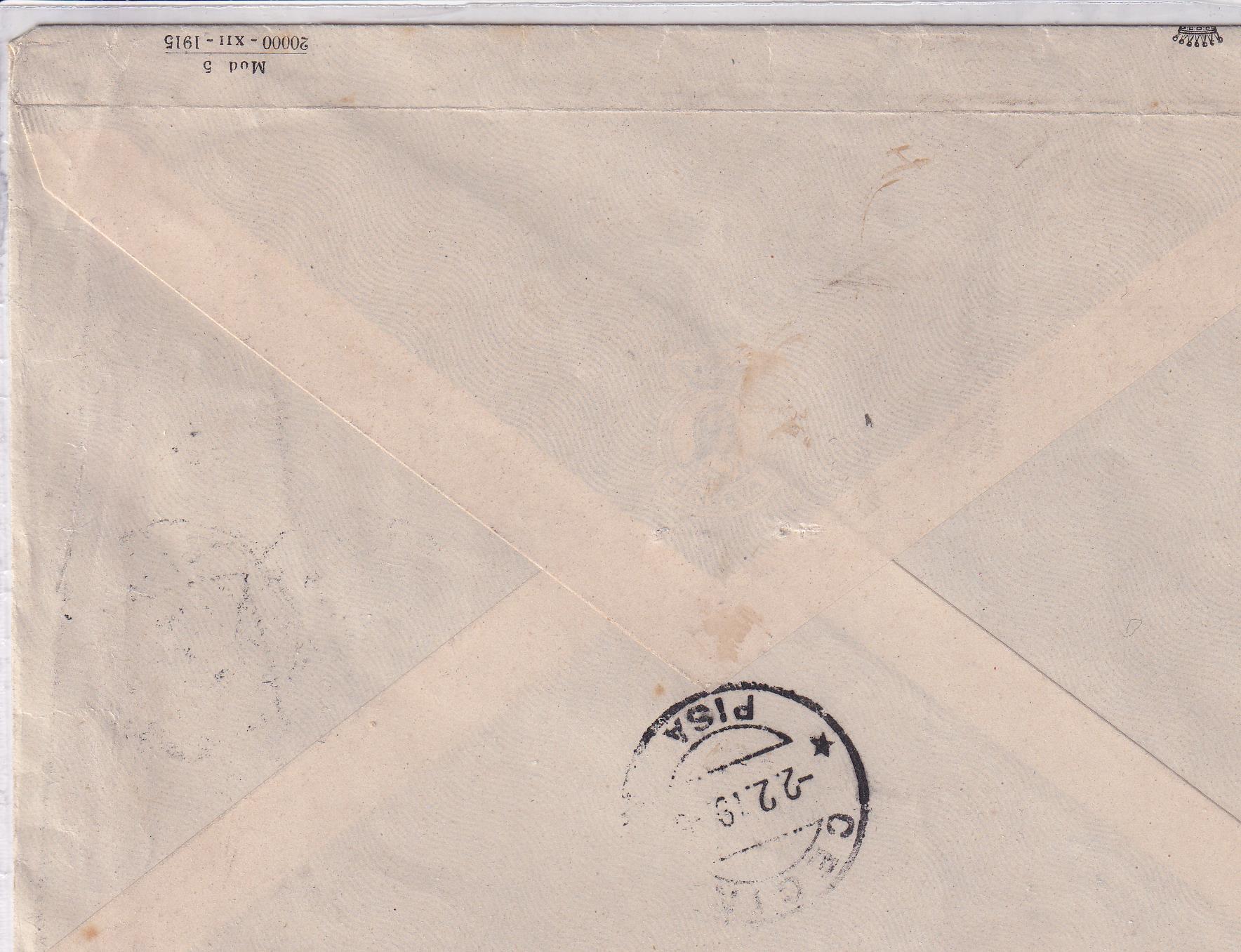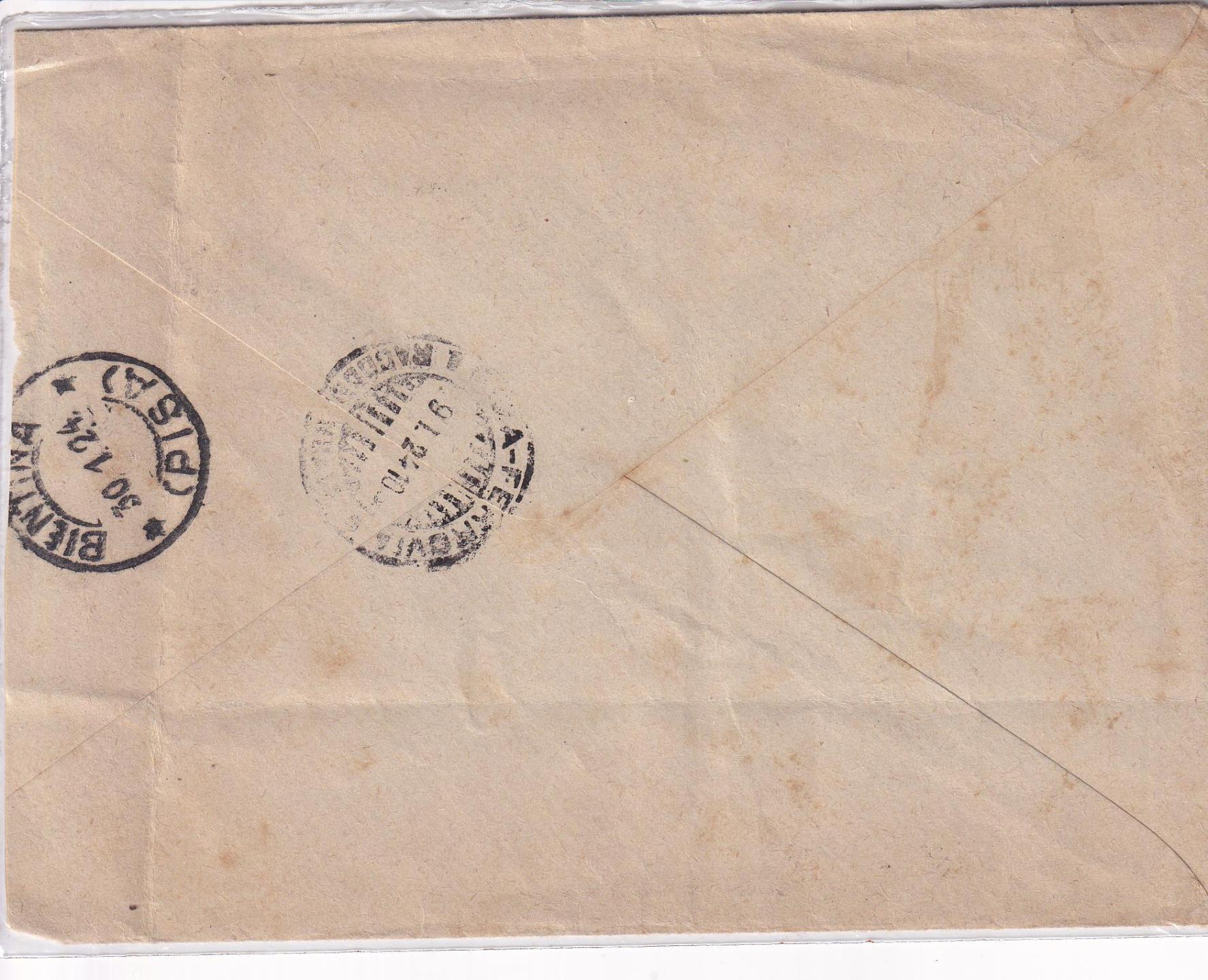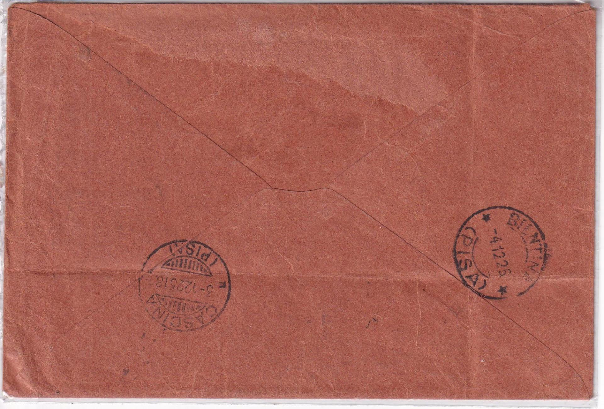 Storia postale. Raccomandata da Vicopisano (Pisa) R 357 del 03/12/1925 a Bientina (Pisa) 04/12/1925