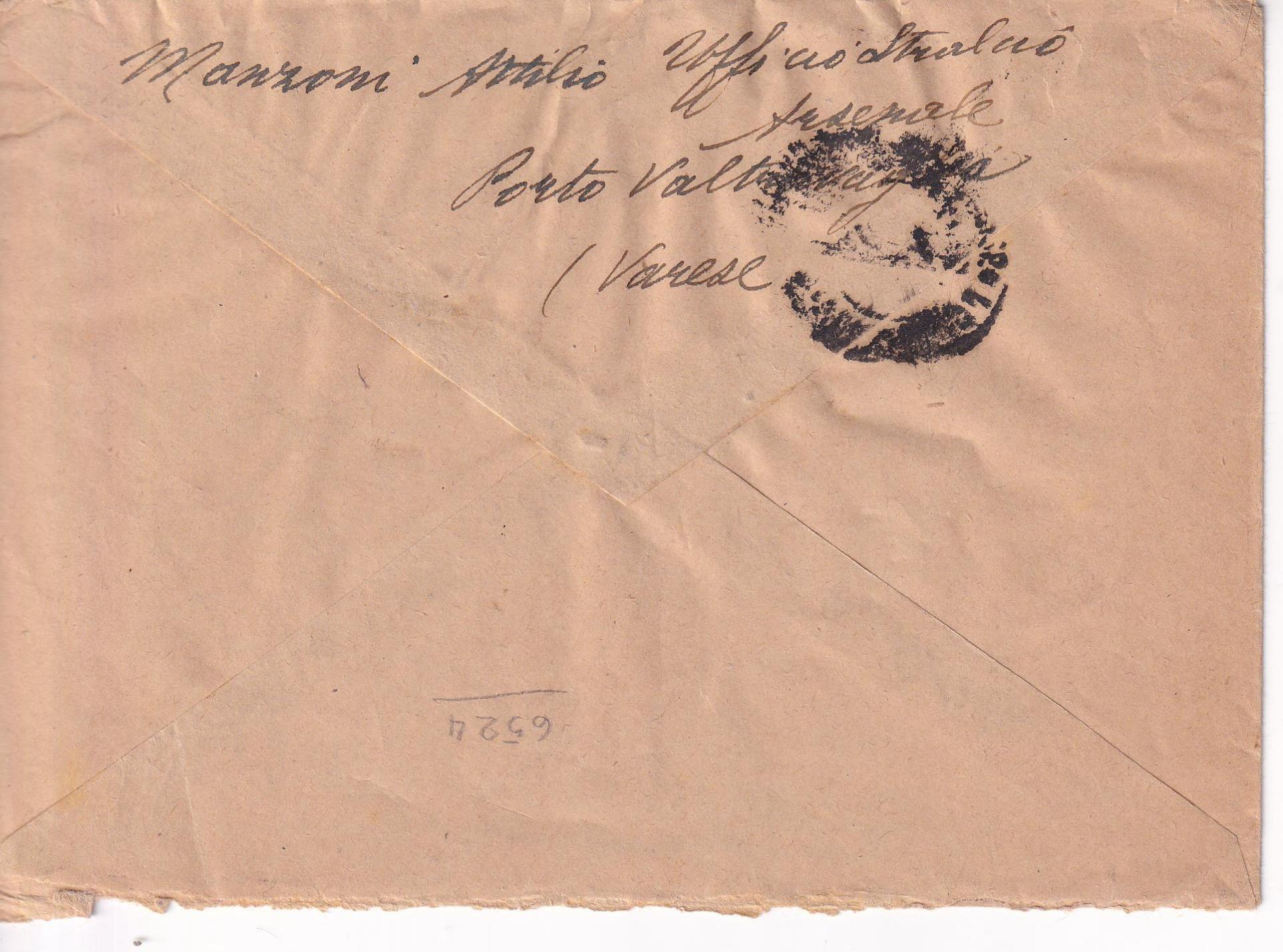 Storia postale. Raccomandata Espresso 1365 da Porto Valtravaglia 30/03/1945 a La Spezia